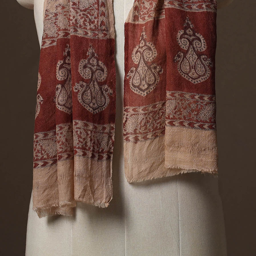 Red - Pedana Natural Dyed Hand Block Print Wool Kalamkari Stole 13
