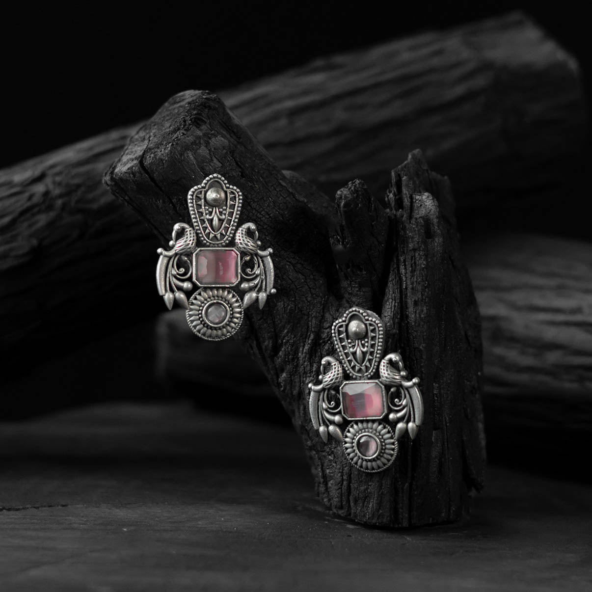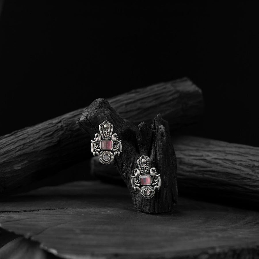 Oxidised handcrafted pink earrings made with a blend of metal, stones and fine detailing. Perfect for festive occasions, weddings, casual outings, office wear, or vacations. Their elegant black and silver tones pair beautifully with everything from casual jeans and flowy dresses to chic office ensembles. A meaningful gift for mother, sister, wife, or girlfriend adding a beautiful touch of tradition to every moment.