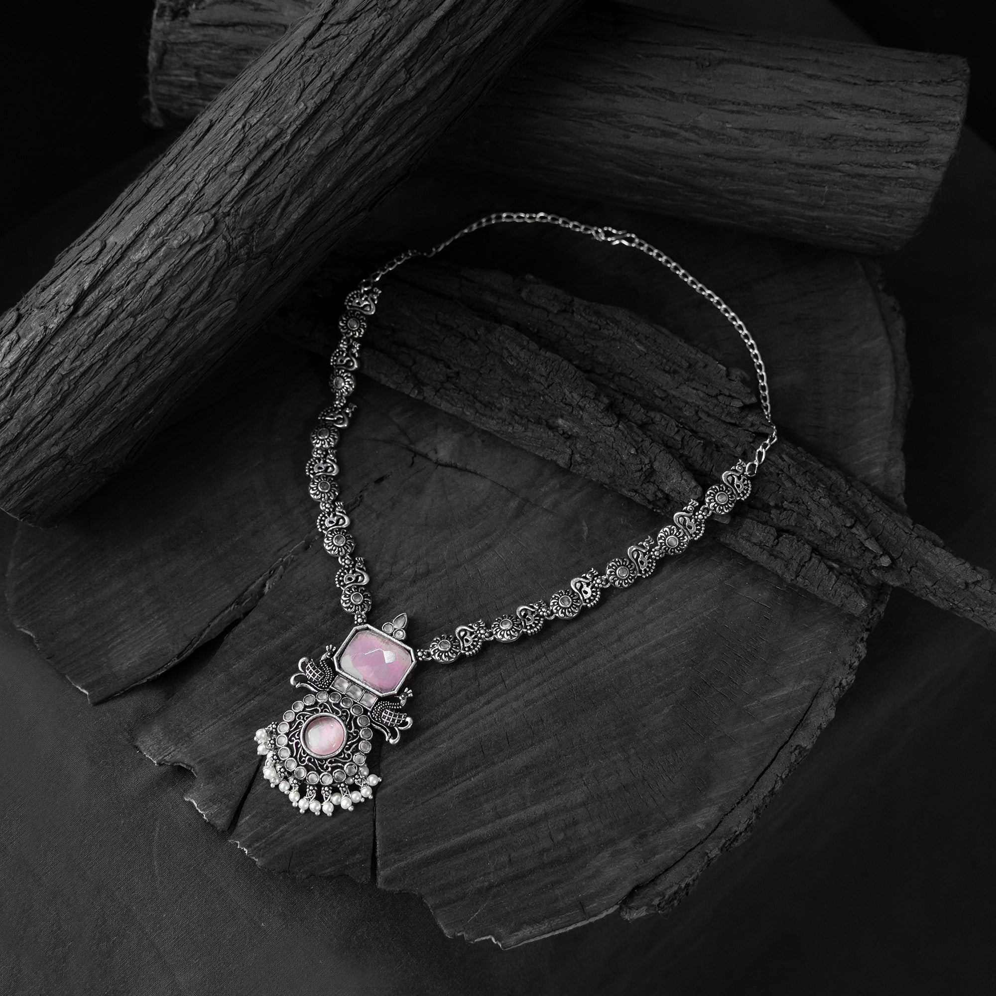 Oxidised handcrafted necklace set features intricate detailing using varied materials like metal, stones, pearls and artistic motifs. Perfect for festive occasions, weddings, office wear or casual styling it pairs beautifully with sarees, kurtas, or contemporary outfits. Complete with matching earrings, this set makes for a thoughtful gift for mother, sister, wife, or girlfriend adding beauty and grace to every special moment.