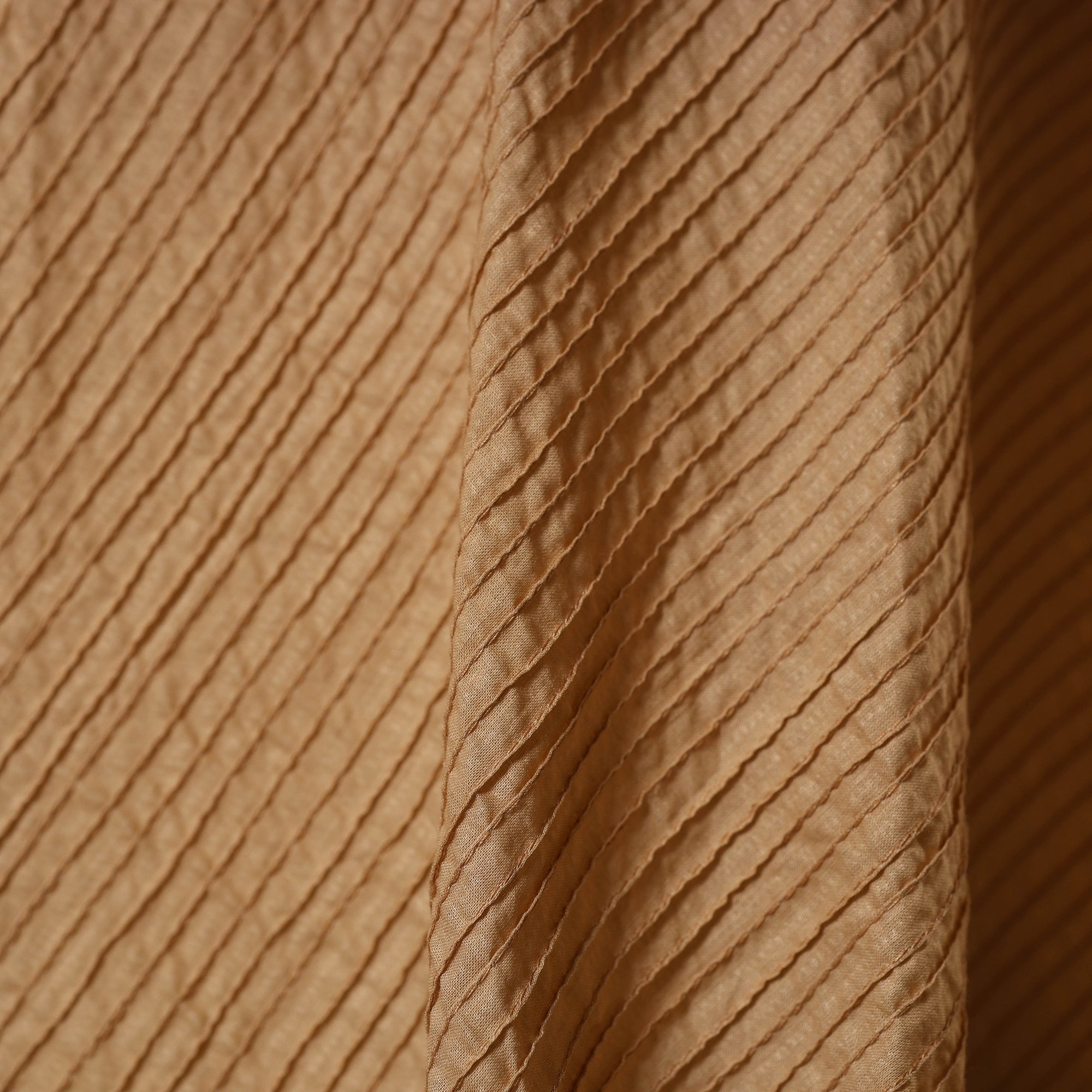 This beige pintuck plain cotton fabric, crafted by folding and stitching delicate ridges across the fabric, this material is ideal for shirts, dresses, and light home décor. It’s breathable, durable, and simple to sew, a favorite among beginners and experienced makers alike.