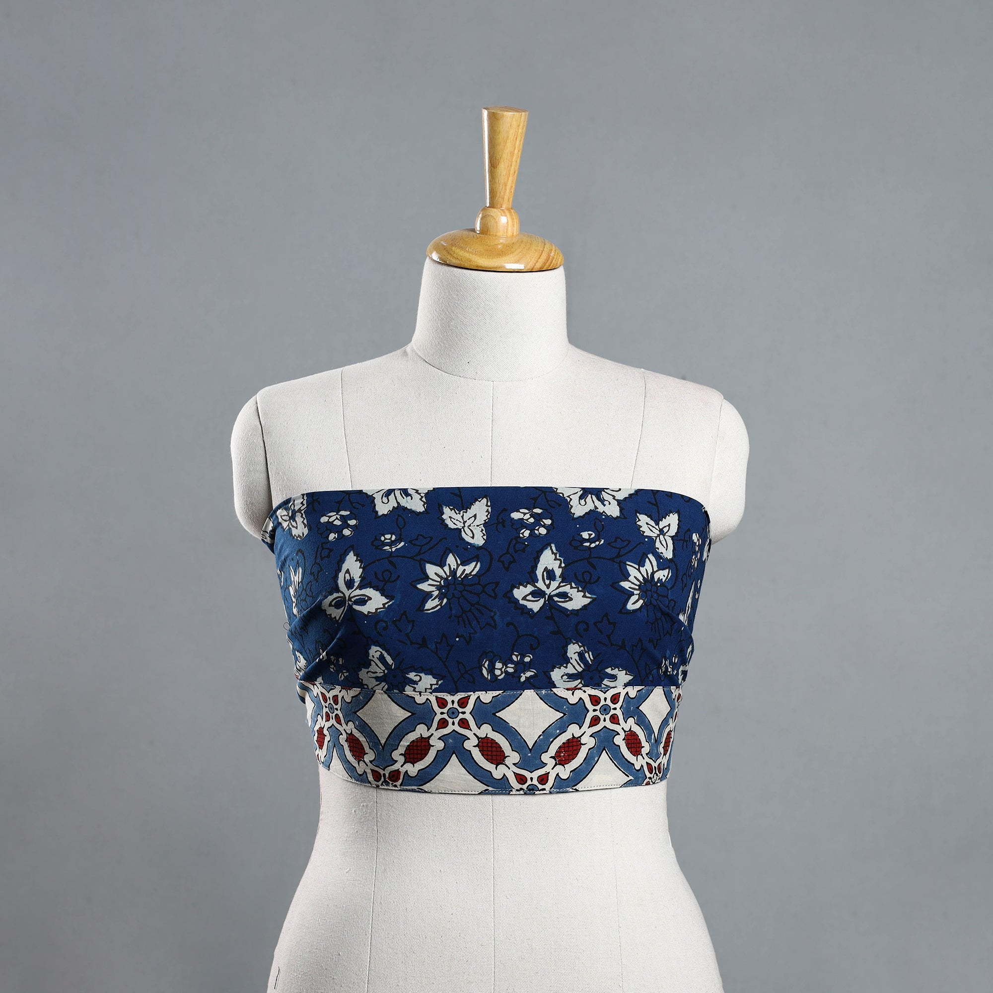 This blue pipad block-printed cotton blouse piece combines traditional craftsmanship with modern design. Crafted from cotton fabrics, each piece features intricate block prints. This mix & match blouse material will go with all of your sarees & enhance your look.