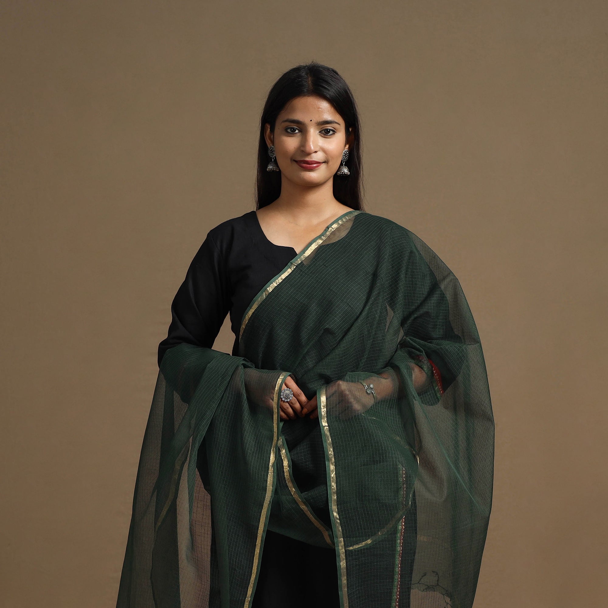 | Material | Green plain cotton kota doria dupatta that perfectly blends tradition with elegance. Crafted by skilled artisans from Kota, Rajasthan, it is lightweight and breathable. The use of natural colours enhances its authenticity, while the zari border adds to its charm, making it ideal for pairing with both ethnic and fusion outfits. |