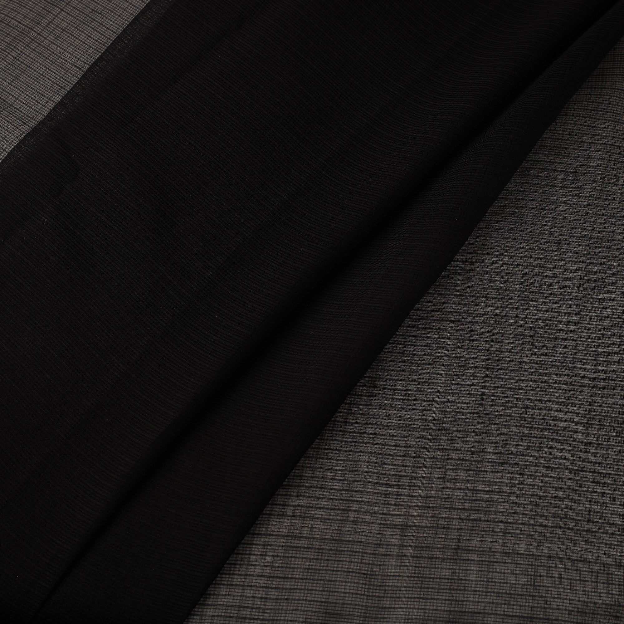 This black plain cotton kota doria fabric is crafted by artisans in Kota, Rajasthan. Known for its airy weave and lightweight texture, Kota Doria blends cotton and silk yarns, where the threads are finely interwoven to create check patterns. The use of natural colors enhances its authenticity. Ideal for making elegant kurtas, dupattas or sarees.