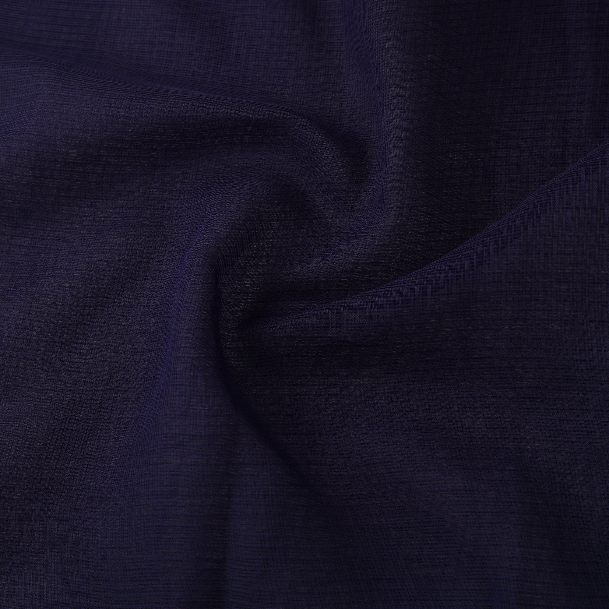This blue plain cotton kota doria fabric is crafted by artisans in Kota, Rajasthan. Known for its airy weave and lightweight texture, Kota Doria blends cotton and silk yarns, where the threads are finely interwoven to create check patterns. The use of natural colors enhances its authenticity. Ideal for making elegant kurtas, dupattas or sarees.