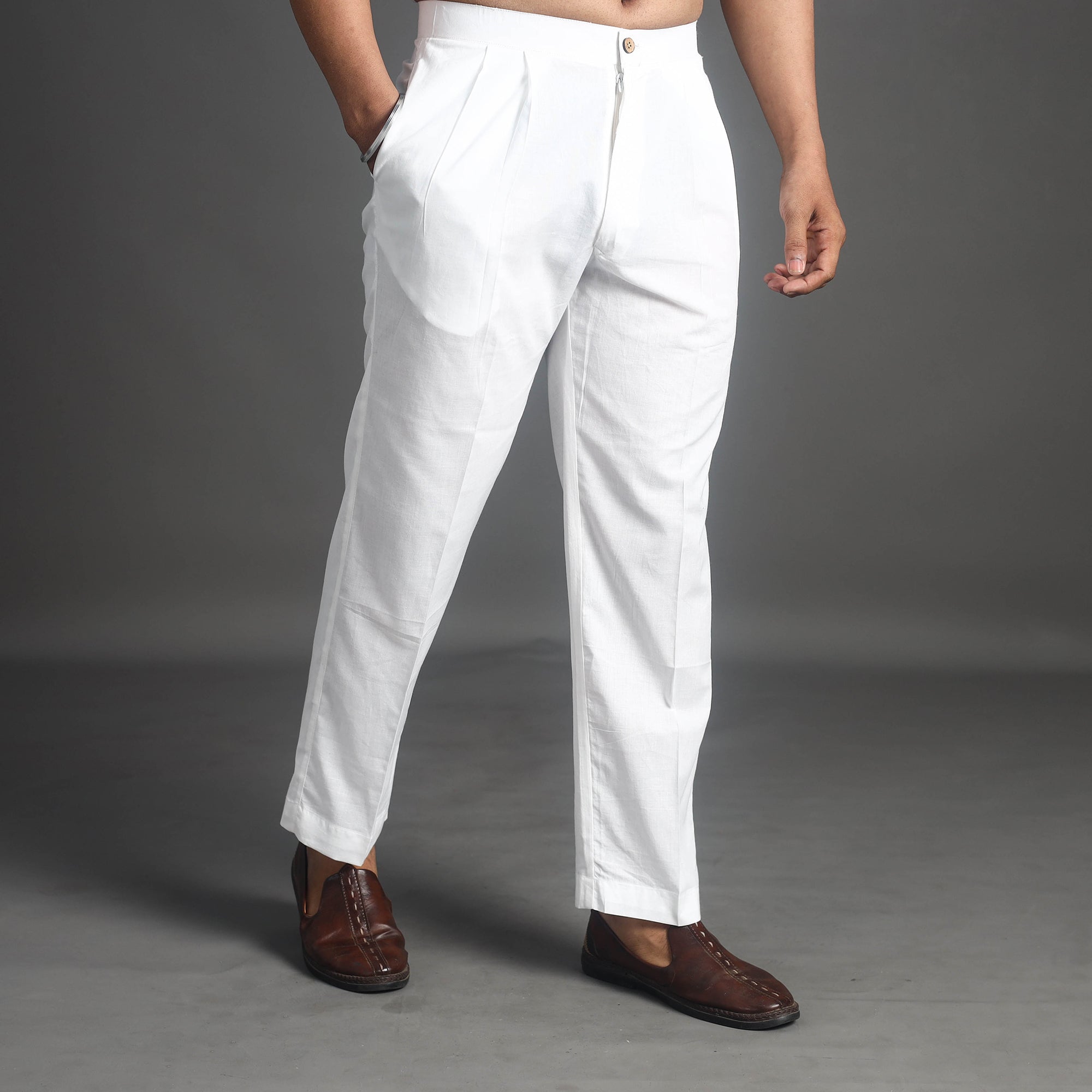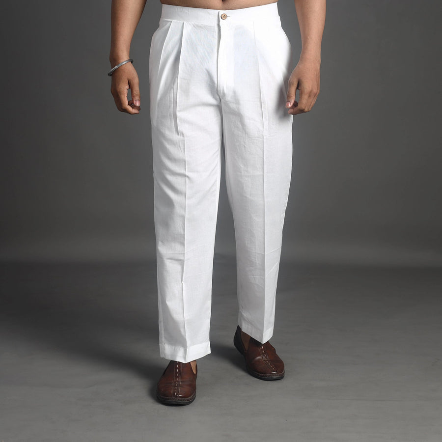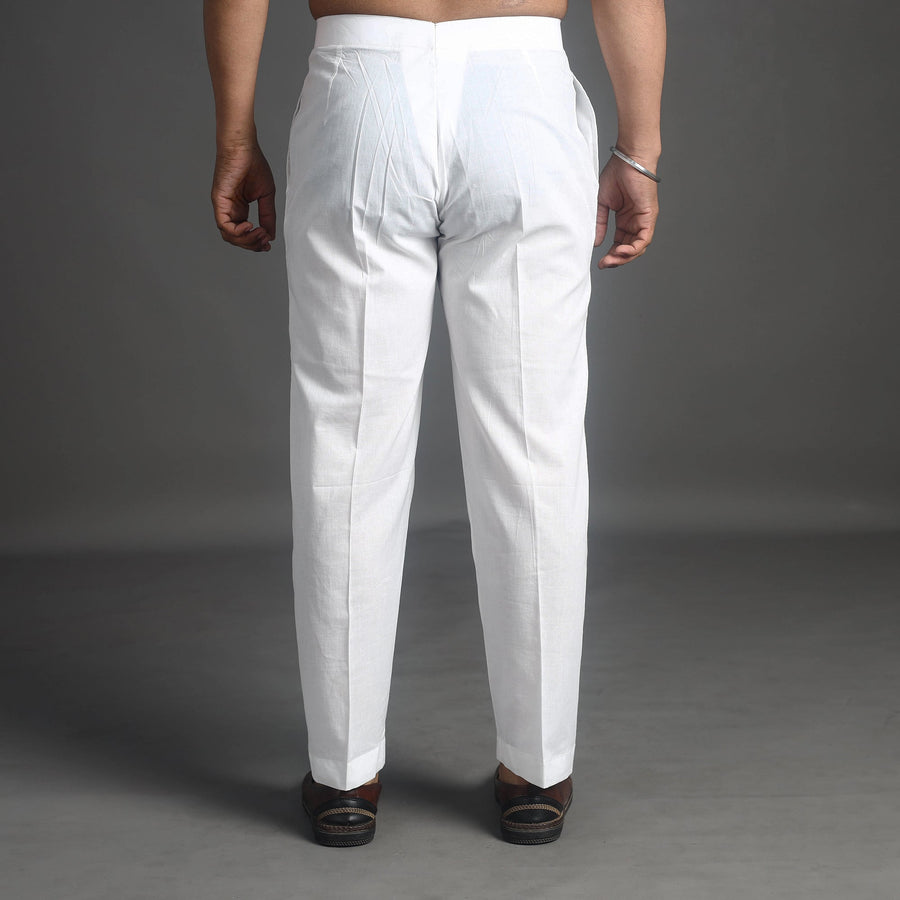 Comfort with this white plain cotton men's pant, designed with convenient side pockets for practicality. Crafted from breathable fabric, they are ideal for casual outings, relaxed days, or daily wear.