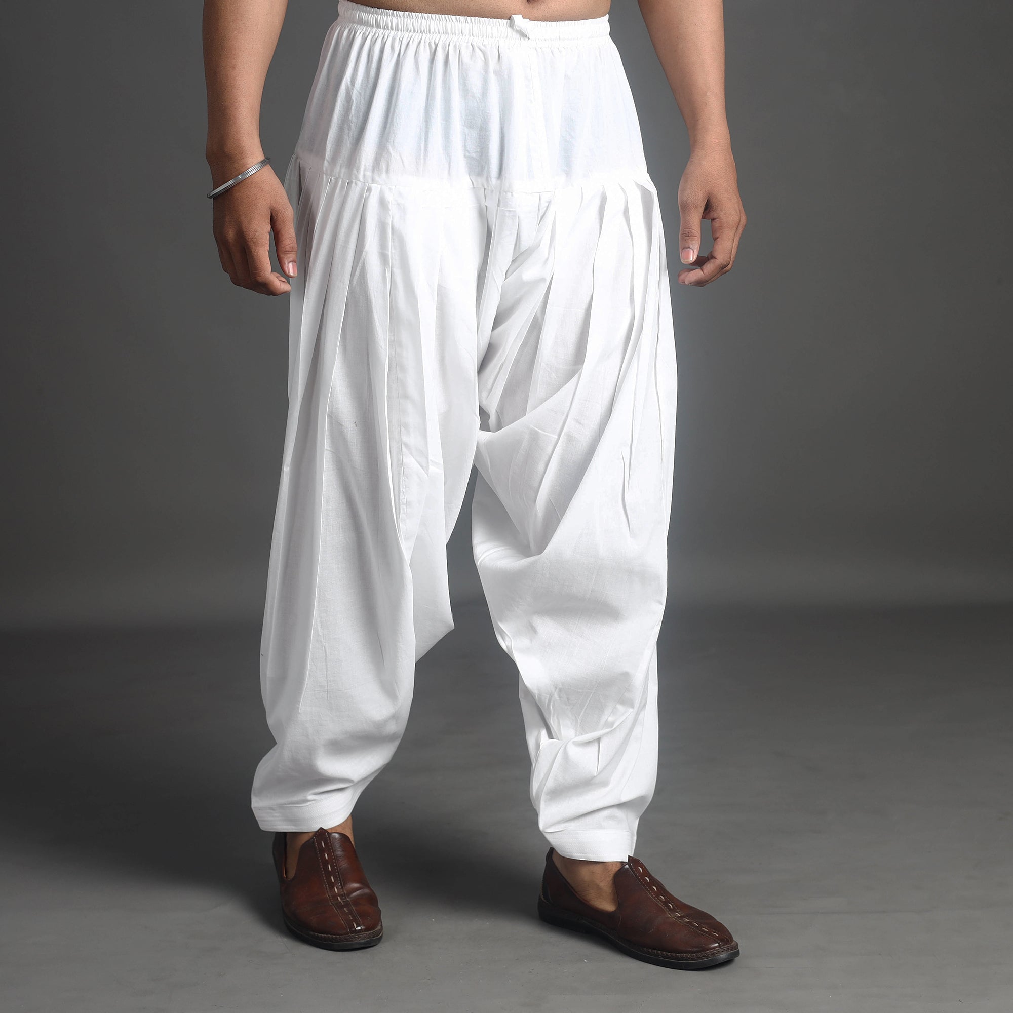 Comfort with this white plain cotton patiala. This pant has an elasticated waist, which ensures comfort. Made from breathable fabric, this pant is characterized by its loose fitting, making it an ideal choice for various occasions from weddings to festivals.