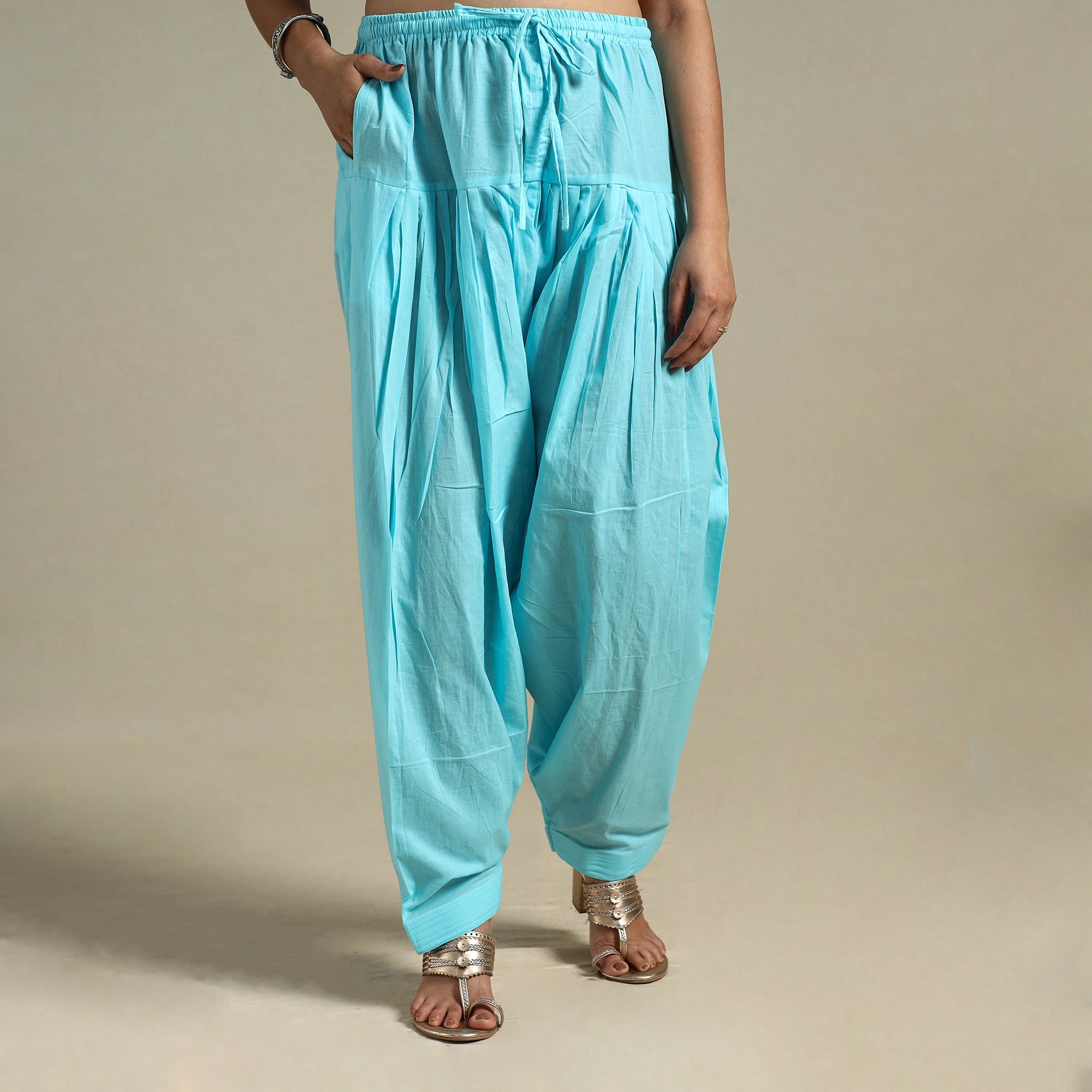 This Blue plain women's salwar is designed for everyday wear, offering comfort and simple style. Crafted from breathable cotton, it features an elasticated waistband, a drawstring for a better fit, and a side pocket. Pair it with your favourite kurta or wear it as a relaxed essential, it's a perfect pick for daily dressing.