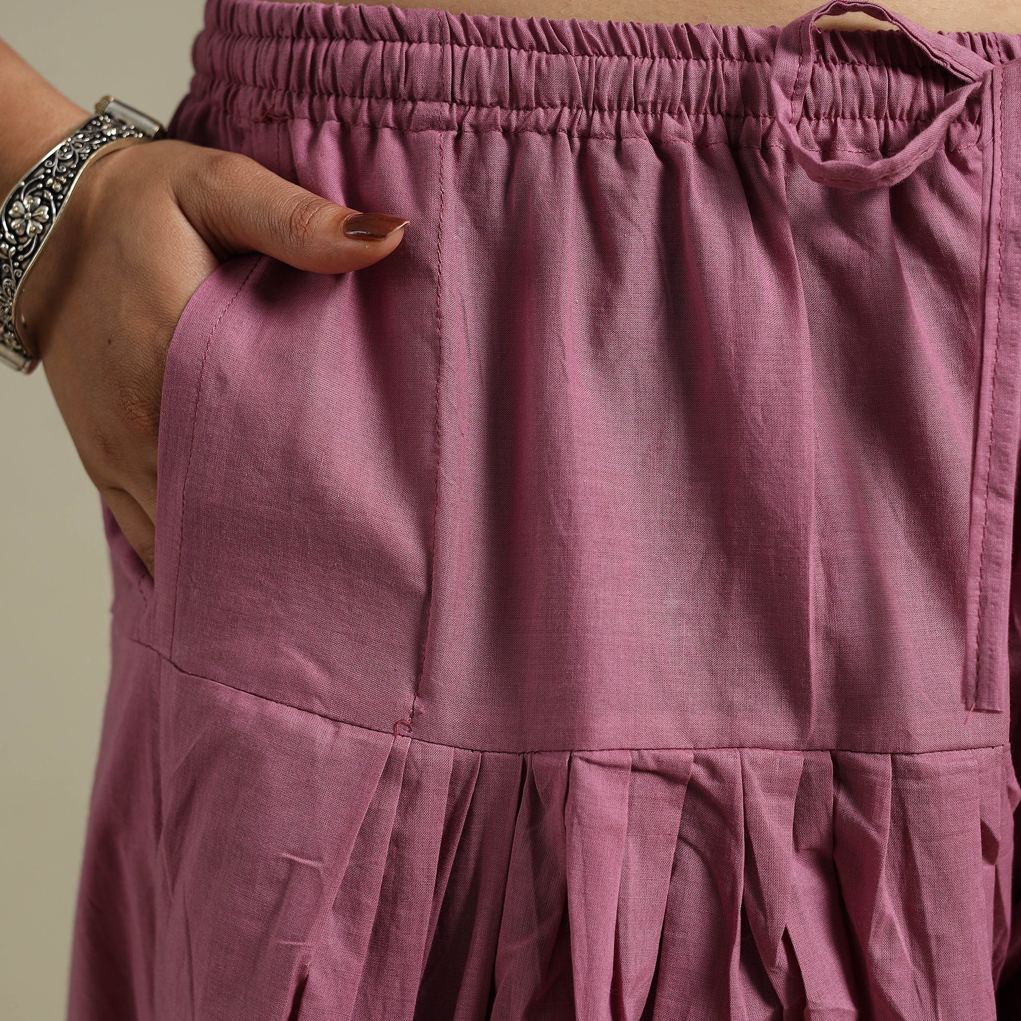 This pink plain women's salwar is designed for everyday wear, offering comfort and simple style. Crafted from breathable cotton, it features an elasticated waistband, a drawstring for a better fit, and a side pocket. Pair it with your favourite kurta or wear it as a relaxed essential, it's a perfect pick for daily dressing.