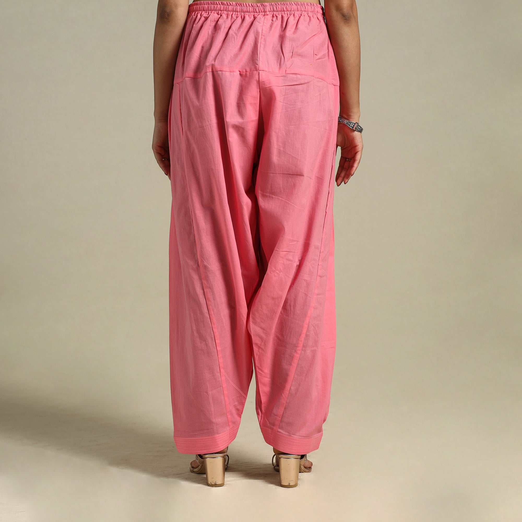 This pink plain women's salwar is designed for everyday wear, offering comfort and simple style. Crafted from breathable cotton, it features an elasticated waistband, a drawstring for a better fit, and a side pocket. Pair it with your favourite kurta or wear it as a relaxed essential, it's a perfect pick for daily dressing.