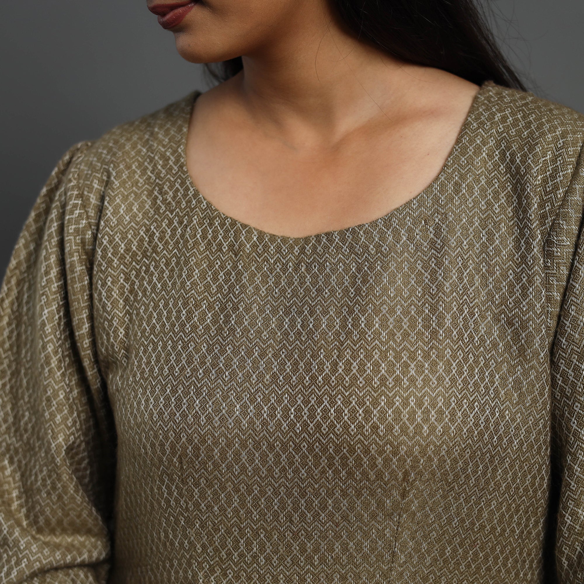Stay warm and stylish with our uniquely designed plain flared woollen dress. Crafted from soft, high-quality acrylic wool, it offers exceptional comfort and warmth to your skin. This dress features a comfortable flared gher style and a convenient side pocket for carrying your small essentials. Ideal for both everyday wear & special occasions, this dress brings cozy comfort and timeless style to your wardrobe.