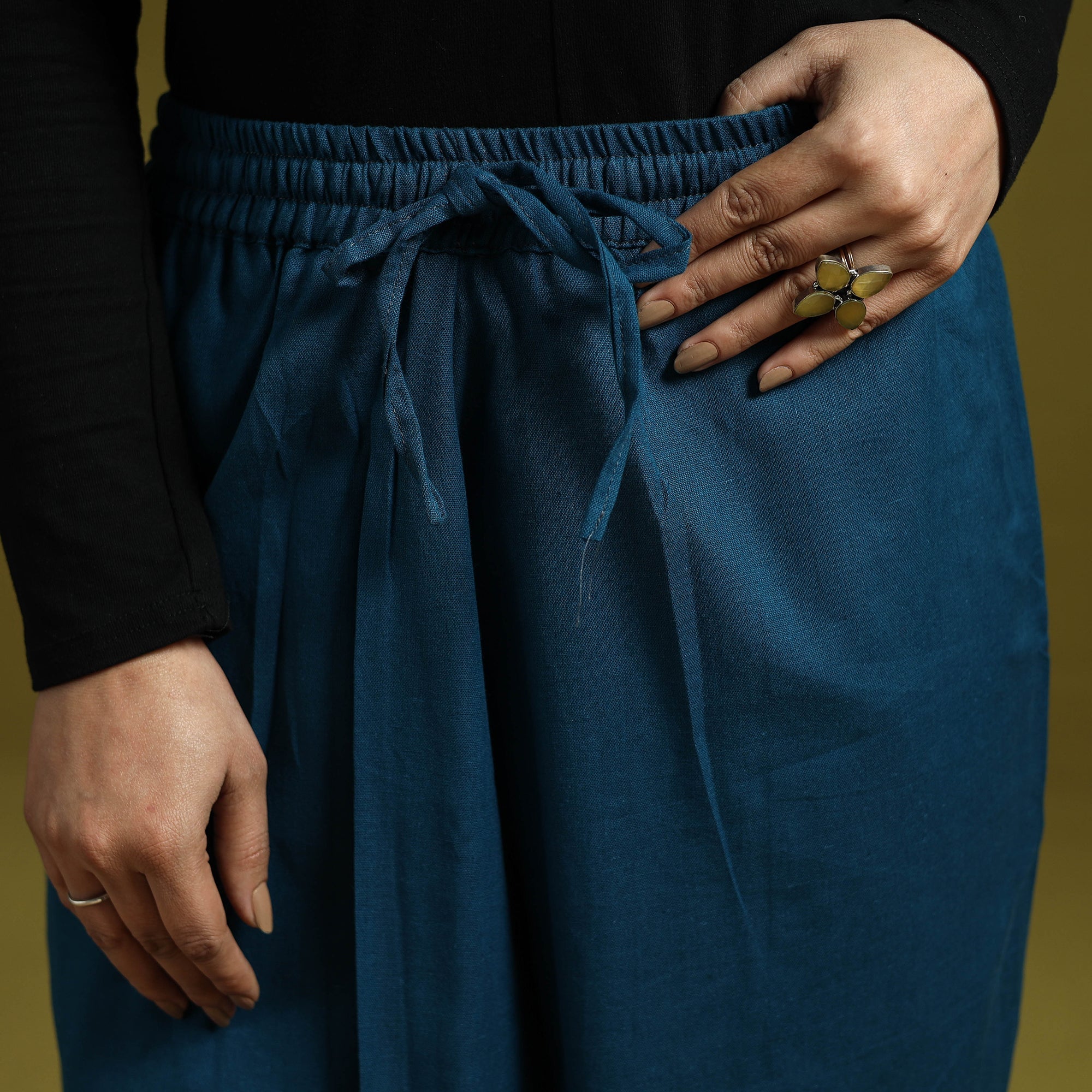 Stay stylish yet comfortable in this blue plain harem pant, crafted from pre-washed flex cotton for lasting softness and durability. Featuring an elastic waistband with drawstring, side pockets for convenience, and relaxed gathers that allow ease of movement, it ensures a perfect fit. A wardrobe essential, this harem pant combines comfort with modern style, making it ideal for yoga, travel, lounging, or casual outings.