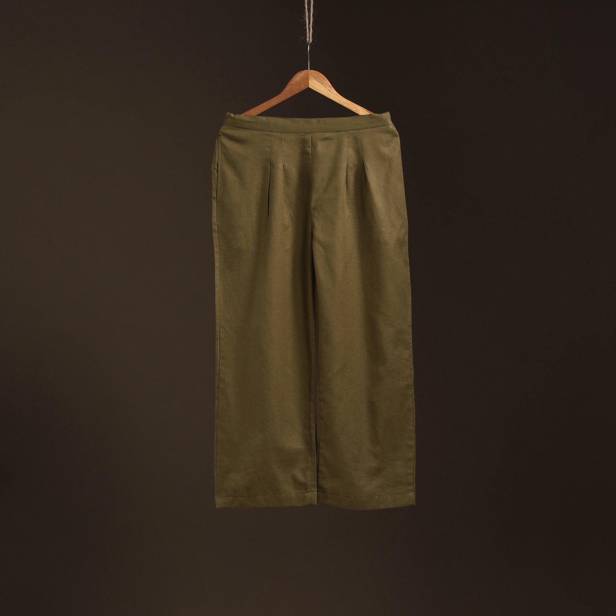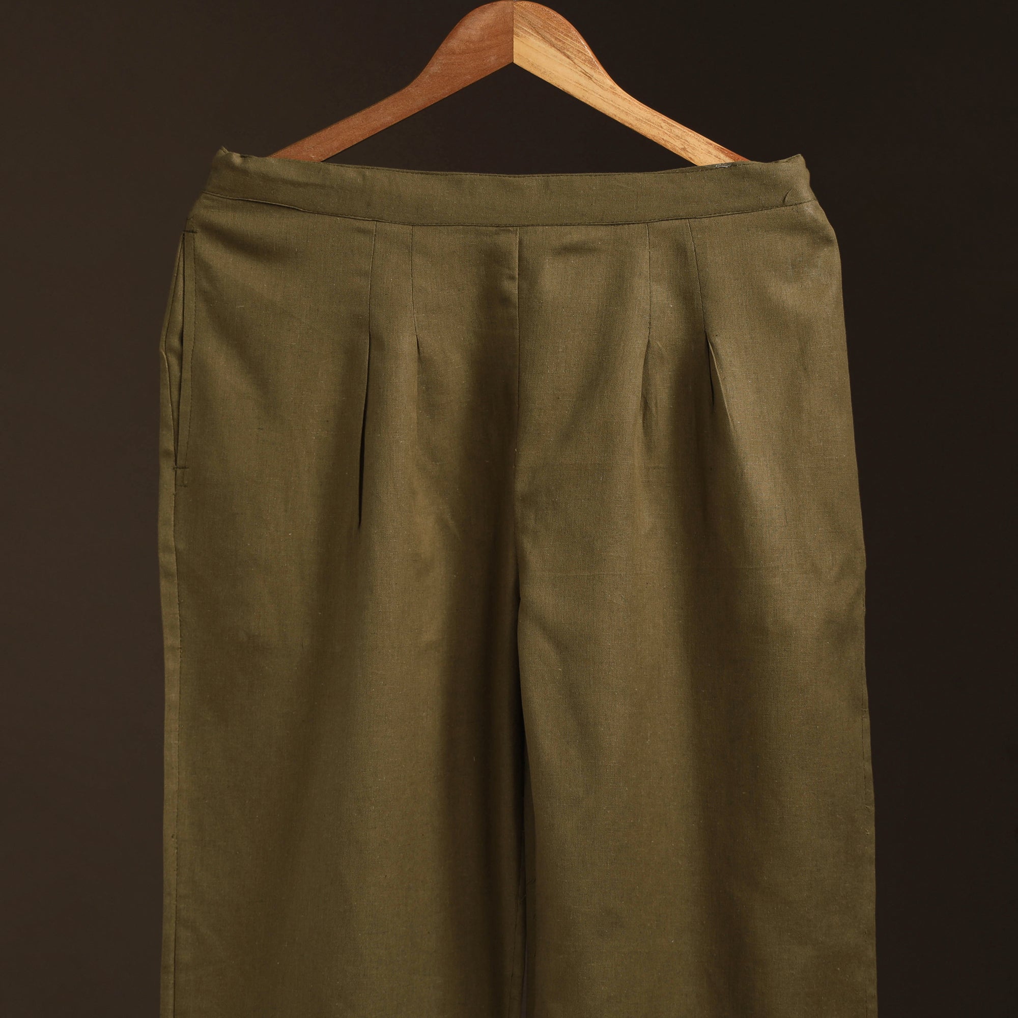 Stay stylish yet comfortable in this green plain palazzo, crafted from prewashed flex cotton that ensures lasting softness and durability. Featuring an elastic waist and side pockets, it provides a secure fit and everyday convenience. A wardrobe must-have, this palazzo blends airy comfort with modern practicality, making it perfect for office wear, outings, travel, or daily use.