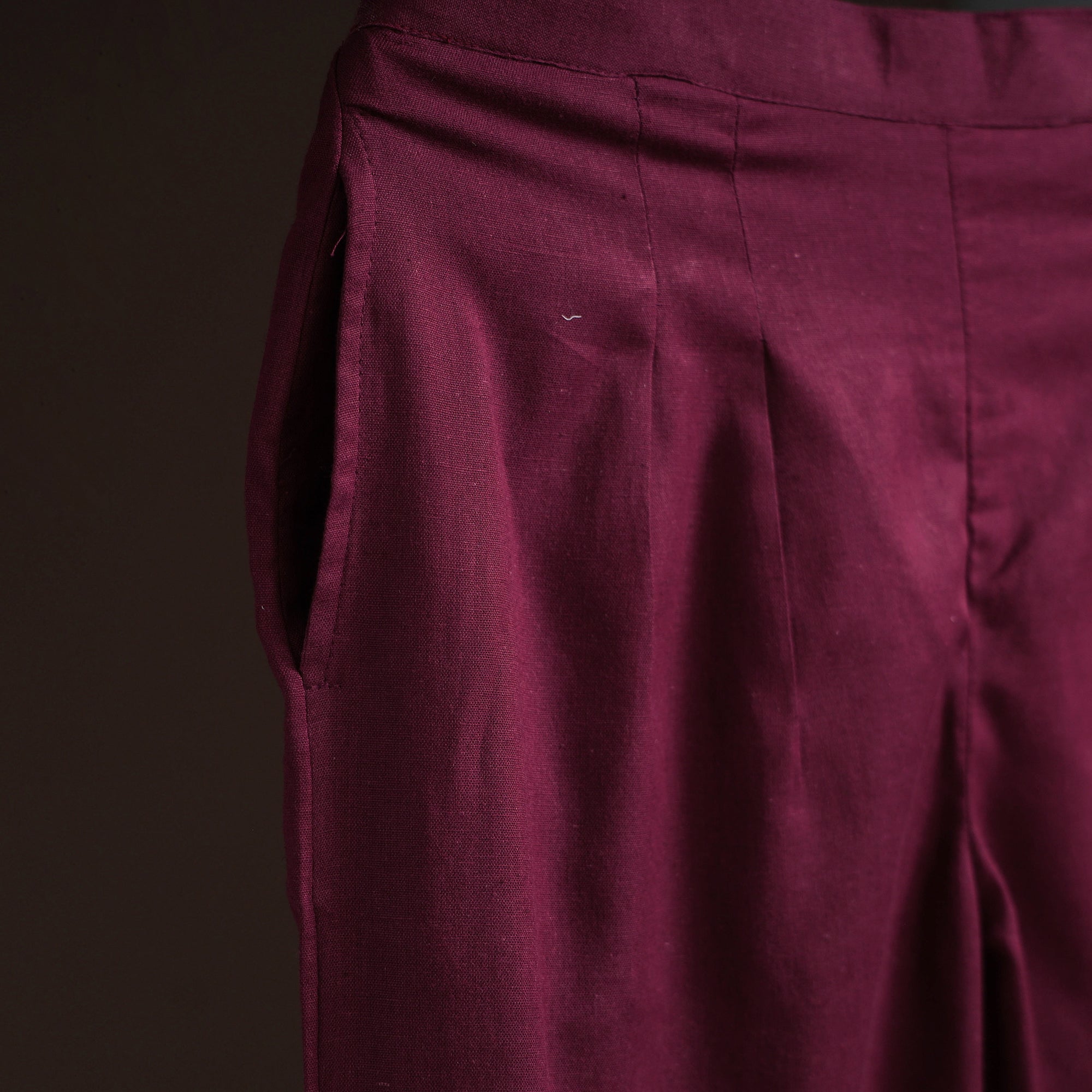 Stay stylish yet comfortable in this purple plain palazzo, crafted from prewashed flex cotton that ensures lasting softness and durability. Featuring an elastic waist and side pockets, it provides a secure fit and everyday convenience. A wardrobe must-have, this palazzo blends airy comfort with modern practicality, making it perfect for office wear, outings, travel, or daily use.