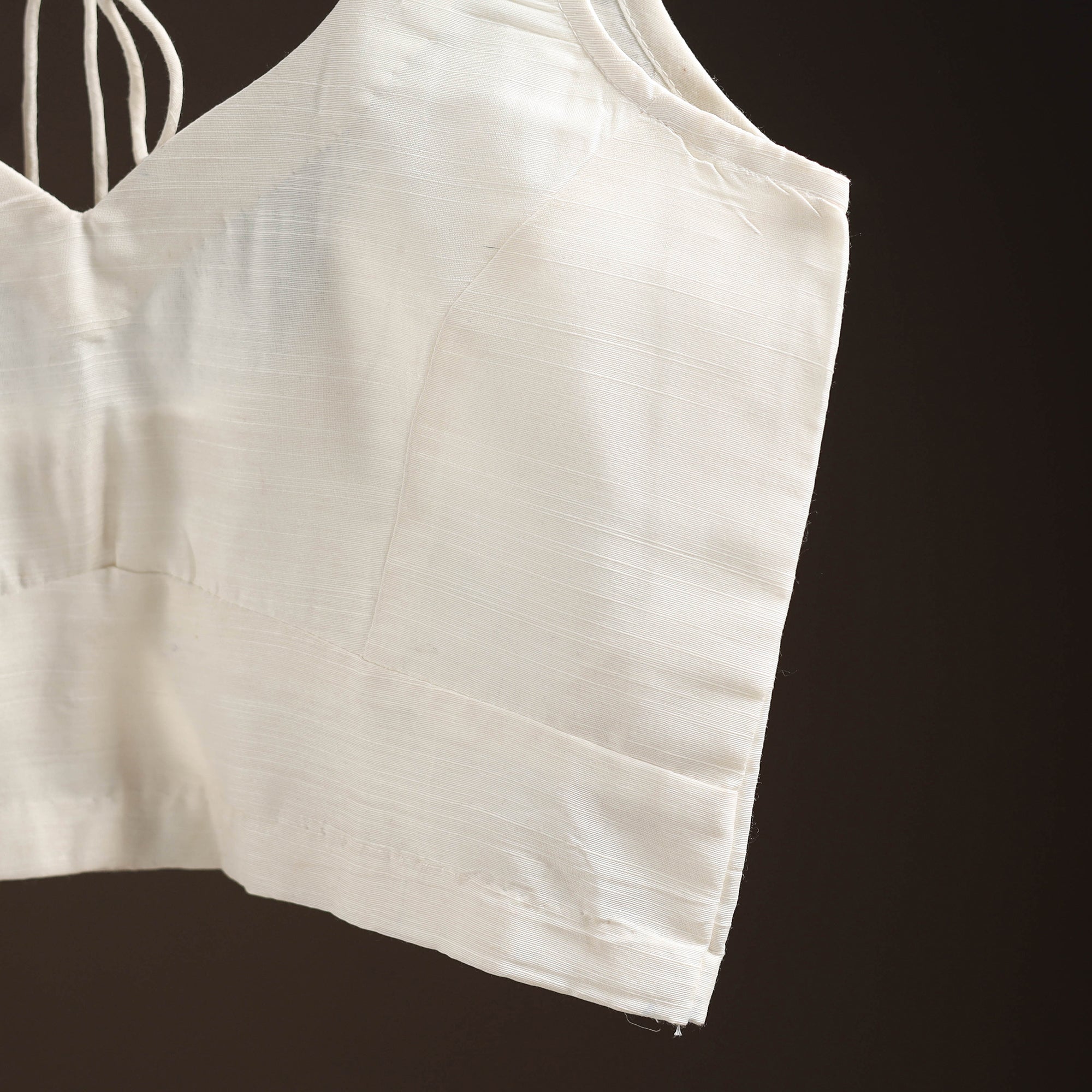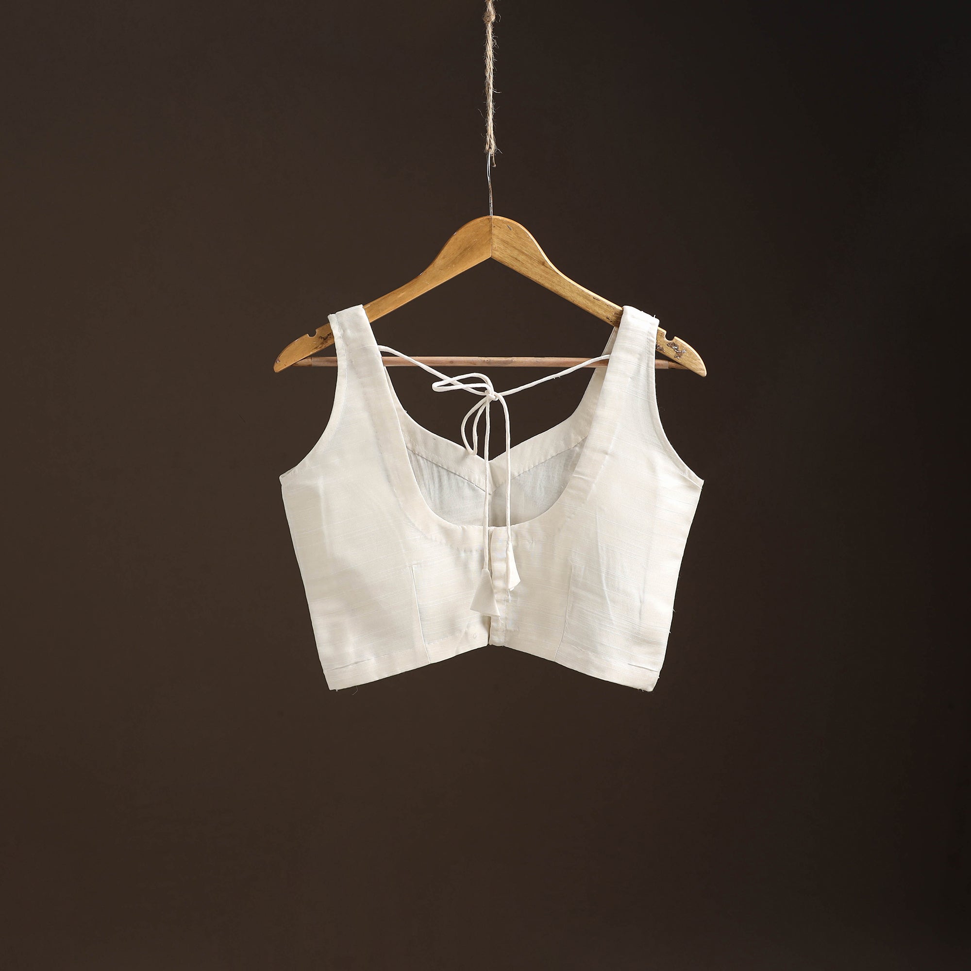 This white plain readymade blouse features a sleeveless design with a back hook closure and dori for easy wear. Made from slub silk fabric, it gives a graceful look and pairs beautifully with sarees or skirts, making it ideal for both everyday wear and special occasions.