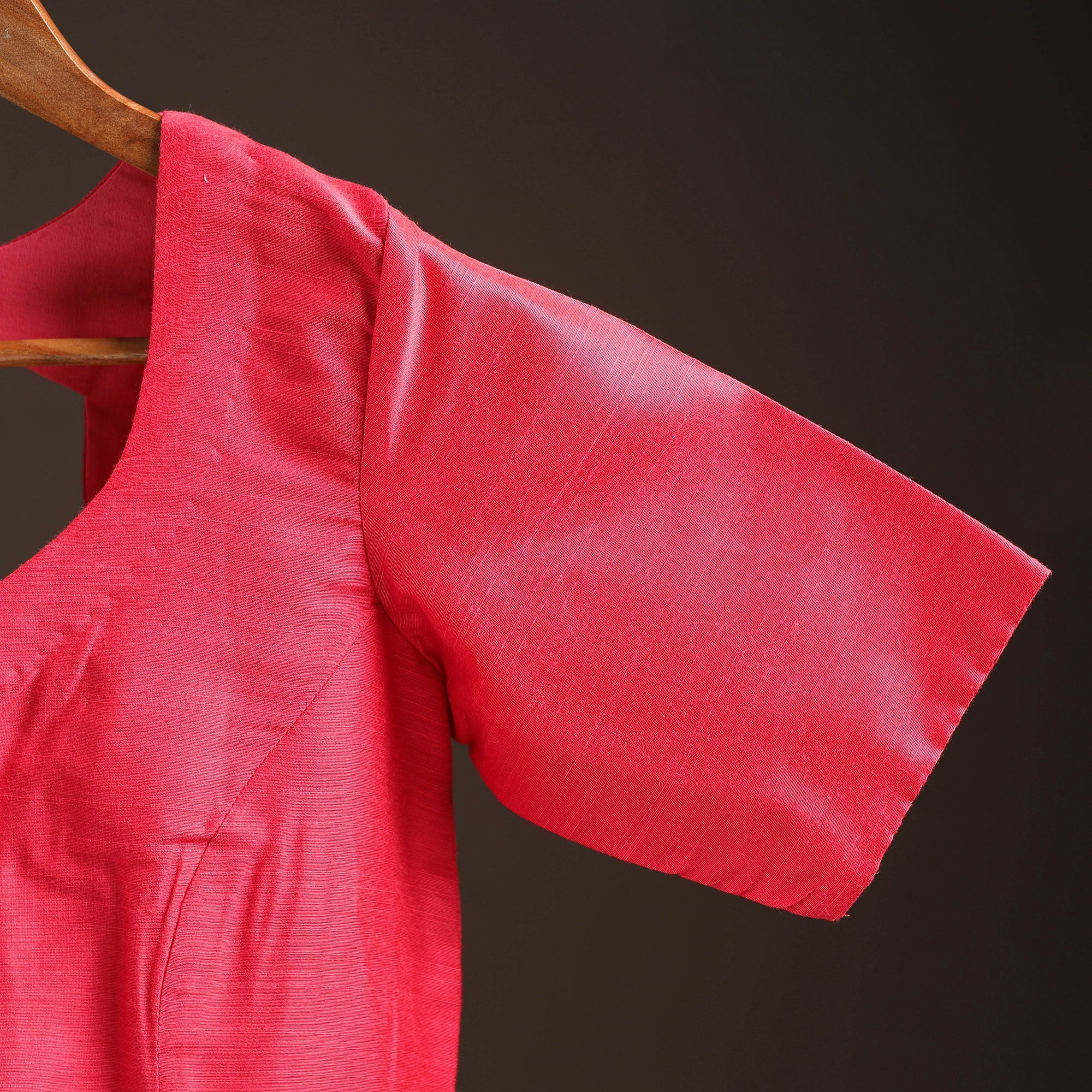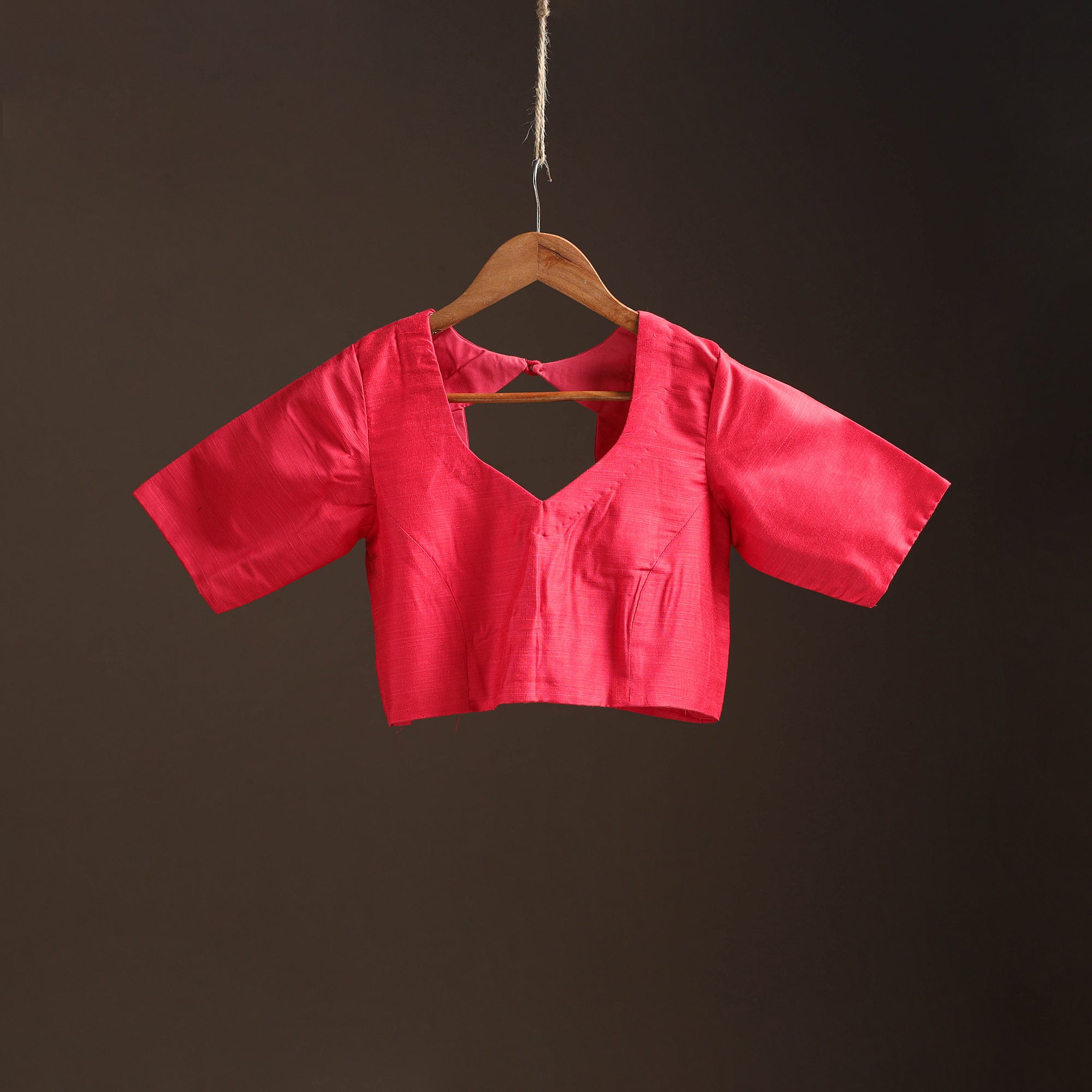 This pink plain readymade blouse features a half sleeves with a front hook closure for easy wear. Made from slub silk fabric, it gives a graceful look and pairs beautifully with sarees or skirts, making it ideal for both everyday wear and special occasions.