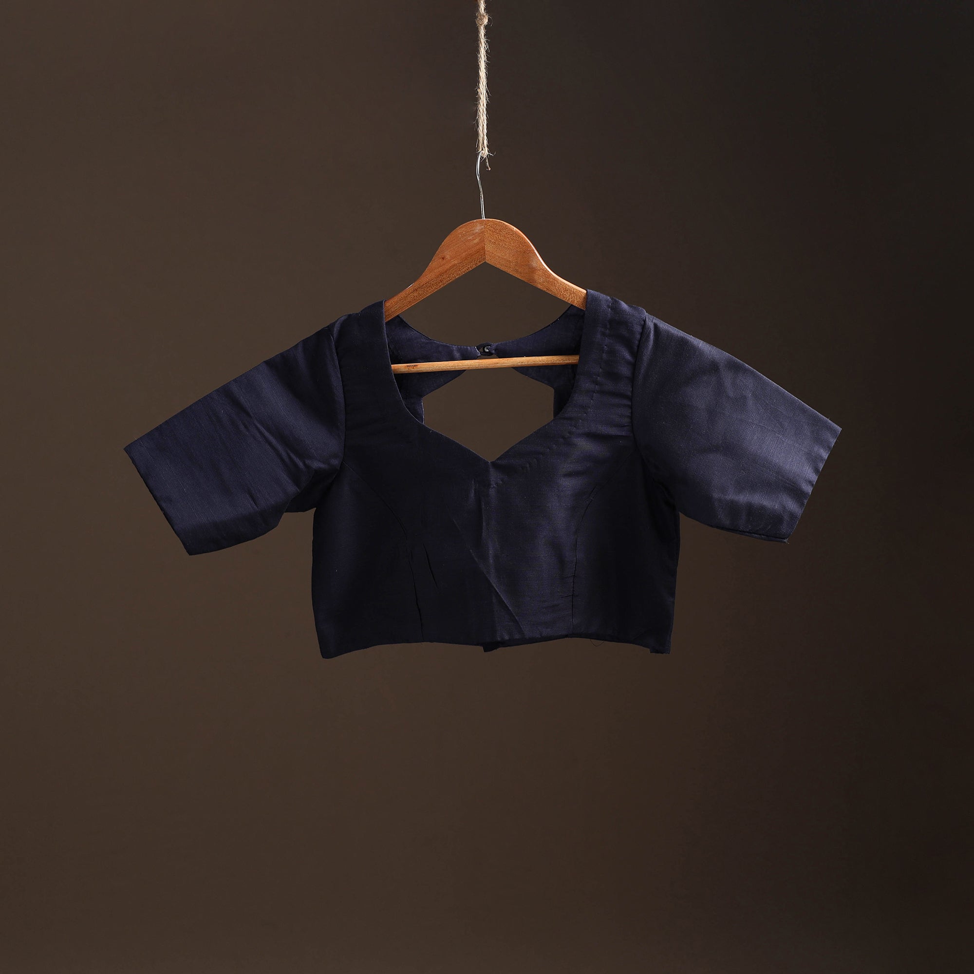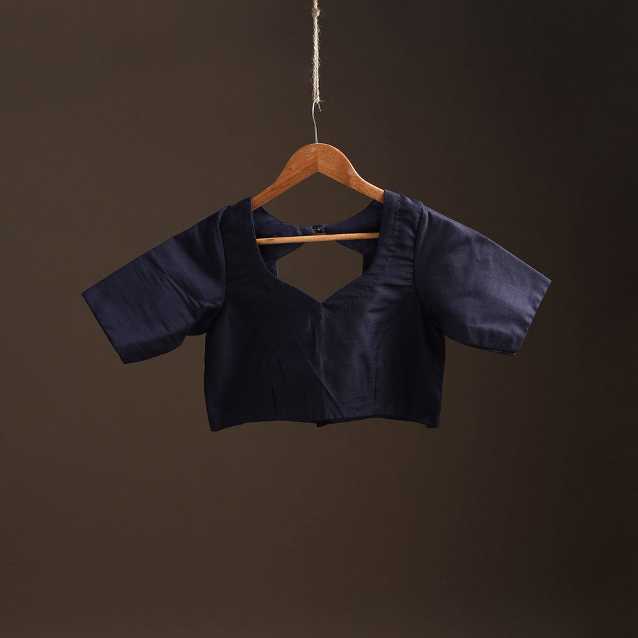 This blue plain readymade blouse features a half sleeves with a front hook closure for easy wear. Made from slub silk fabric, it gives a graceful look and pairs beautifully with sarees or skirts, making it ideal for both everyday wear and special occasions.