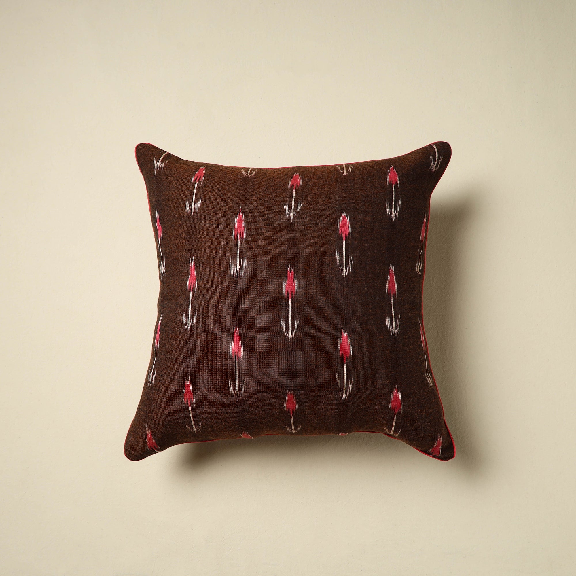 Bring home timeless charm with this brown pochampally Ikat cotton cushion cover. Made from soft, breathable cotton, it offers a blend of tradition and comfort to elevate your space. Ideal for styling sofas, chairs, or beds with effortless elegance.