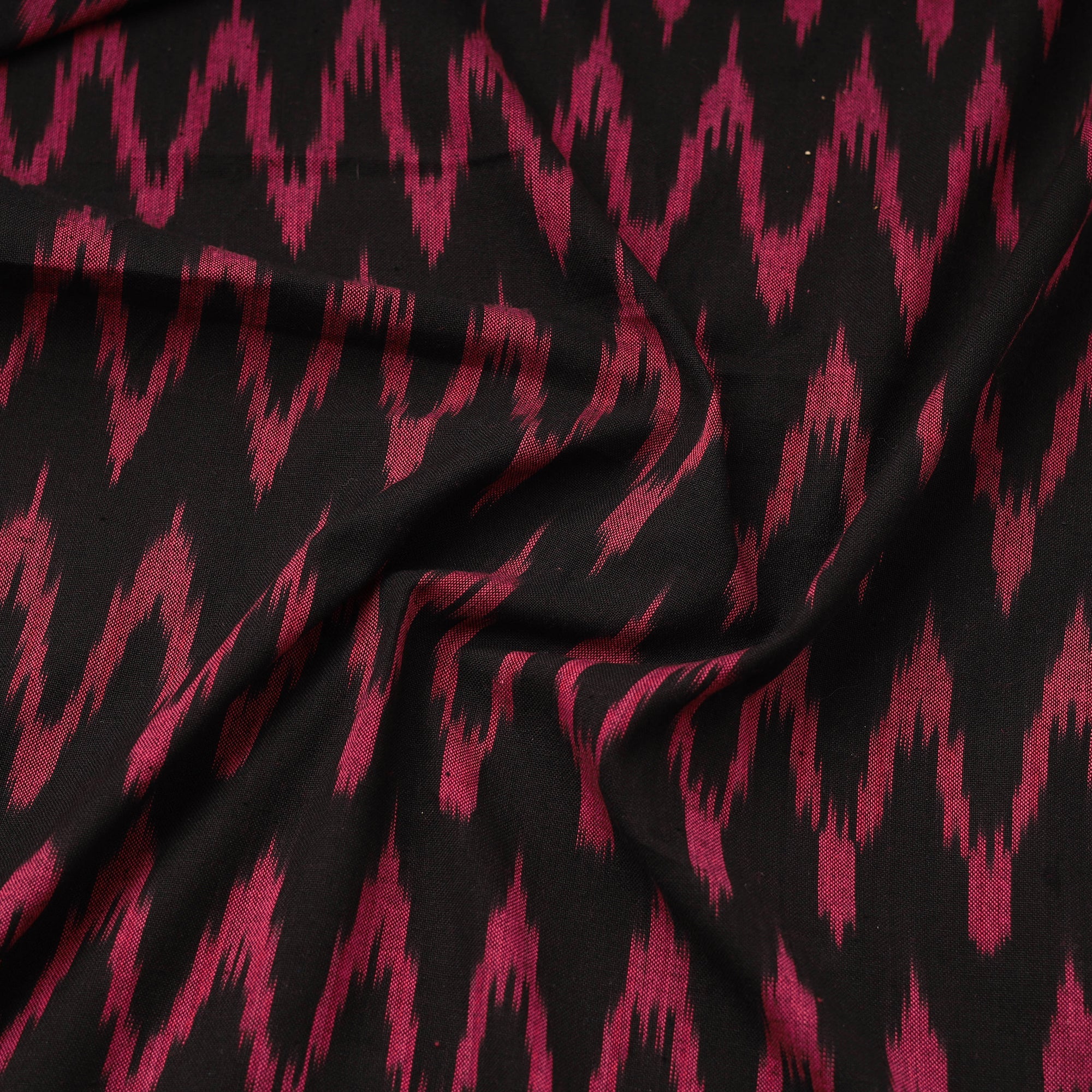 This black cotton pochampally Ikat fabric is a traditional weave from Telangana, known for its precision and vibrant patterns. The designs are crafted using a resist-dyeing technique where threads are dyed before weaving, resulting in striking geometric motifs. Appreciated for its rich texture, this fabric is ideal for ethnic wear, home décor, or creative sewing projects.