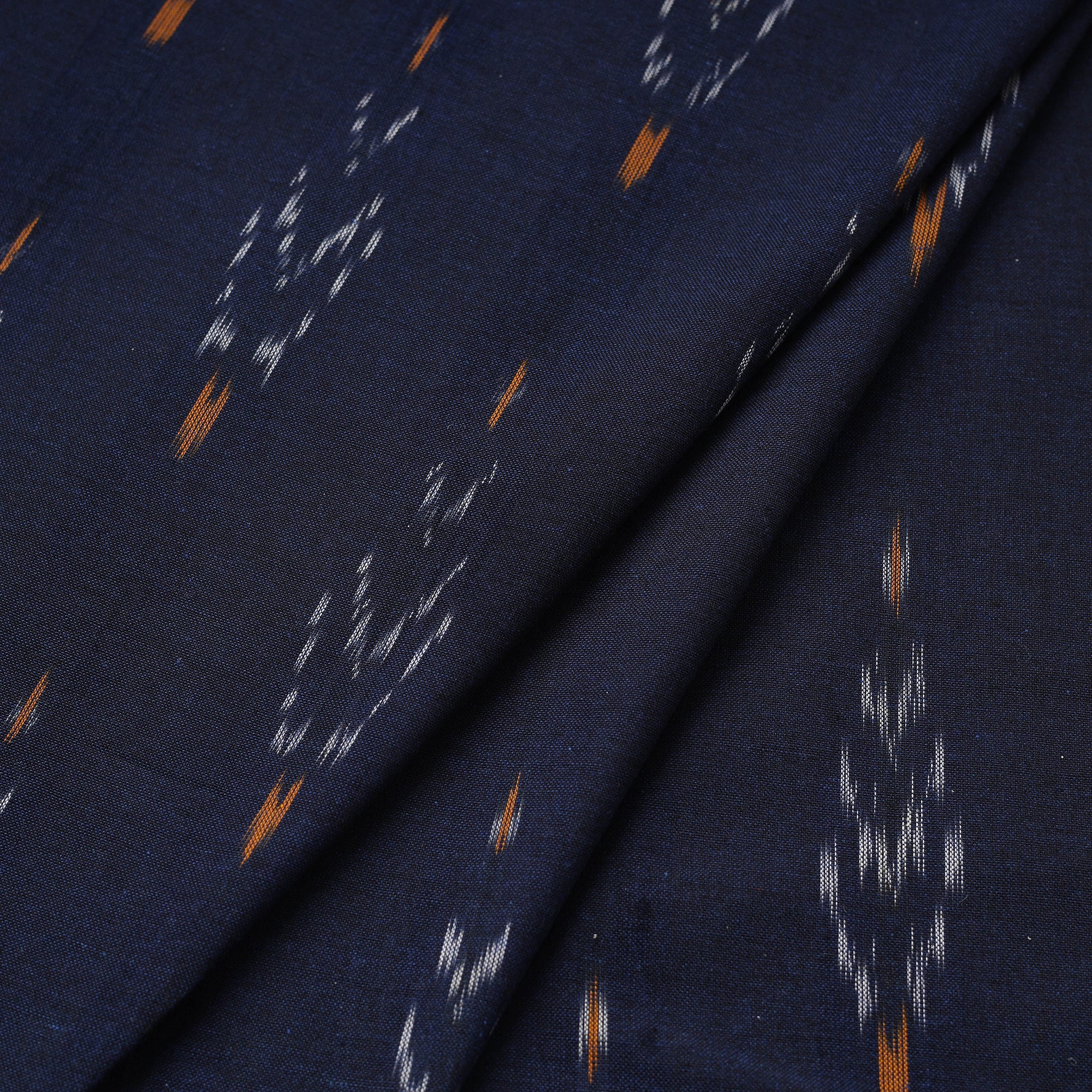 This blue cotton pochampally Ikat fabric is a traditional weave from Telangana, known for its precision and vibrant patterns. The designs are crafted using a resist-dyeing technique where threads are dyed before weaving, resulting in striking geometric motifs. Appreciated for its rich texture, this fabric is ideal for ethnic wear, home décor, or creative sewing projects.