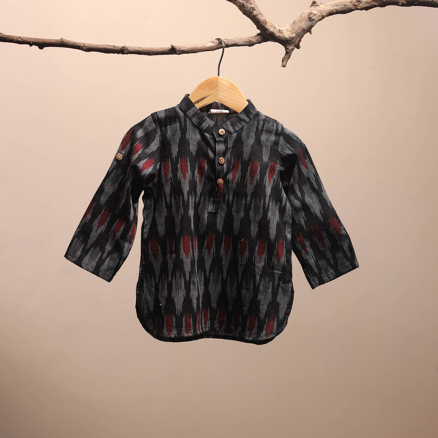Black - Pochampally Ikat Cotton Kids Kurta (6-12 Months) 02