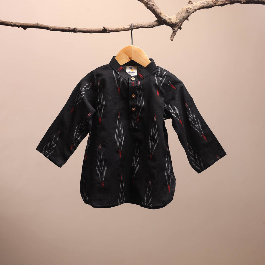 Black - Pochampally Ikat Cotton Kids Kurta (6-12 Months) 04
