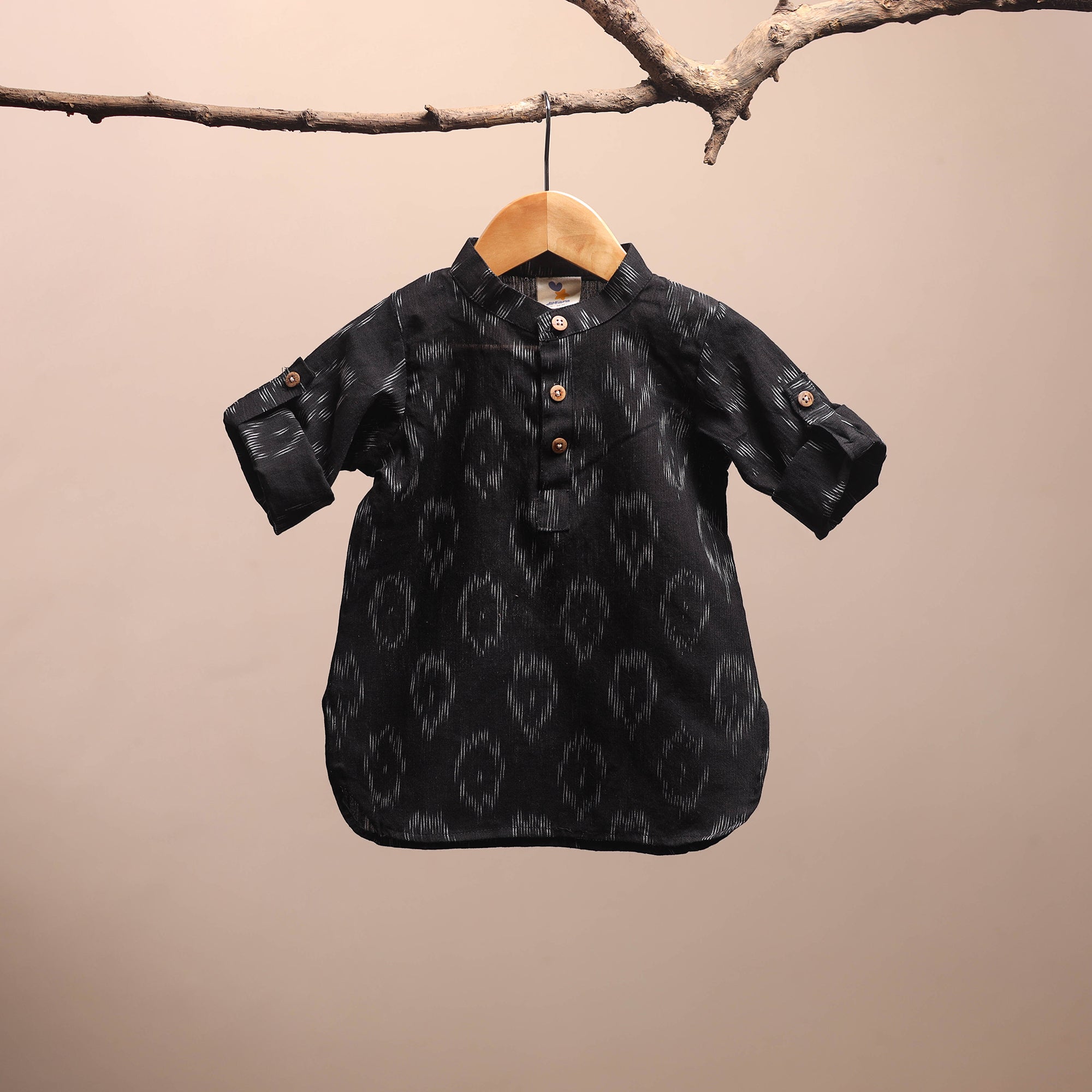 Black - Pochampally Ikat Cotton Kids Kurta (6-12 Months) 14