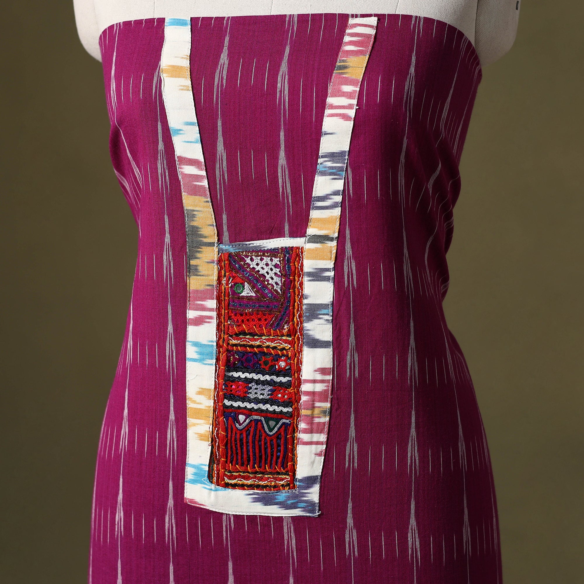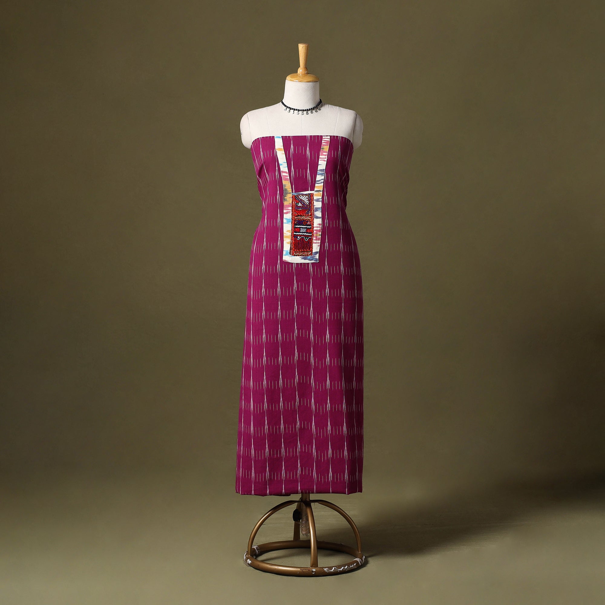 This pink pochampally Ikat cotton kurta material is soft, breathable, and perfect for everyday wear. It features a handcrafted patchwork design on the front neckline, adding a subtle touch of uniqueness. Ideal for creating comfortable daily kurtas, office-wear styles, or casual outfits. Just pick your style and get it stitched your way.