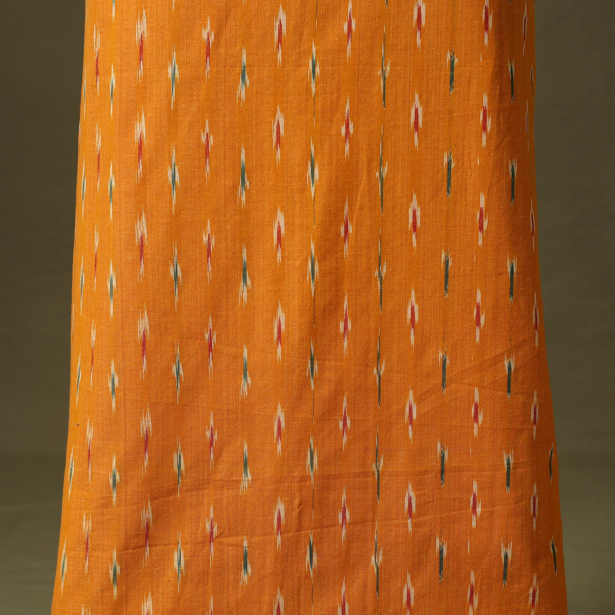 This orange pochampally Ikat cotton kurta material is soft, breathable, and perfect for everyday wear. It features a handcrafted patchwork design on the front neckline, adding a subtle touch of uniqueness. Ideal for creating comfortable daily kurtas, office-wear styles, or casual outfits. Just pick your style and get it stitched your way.