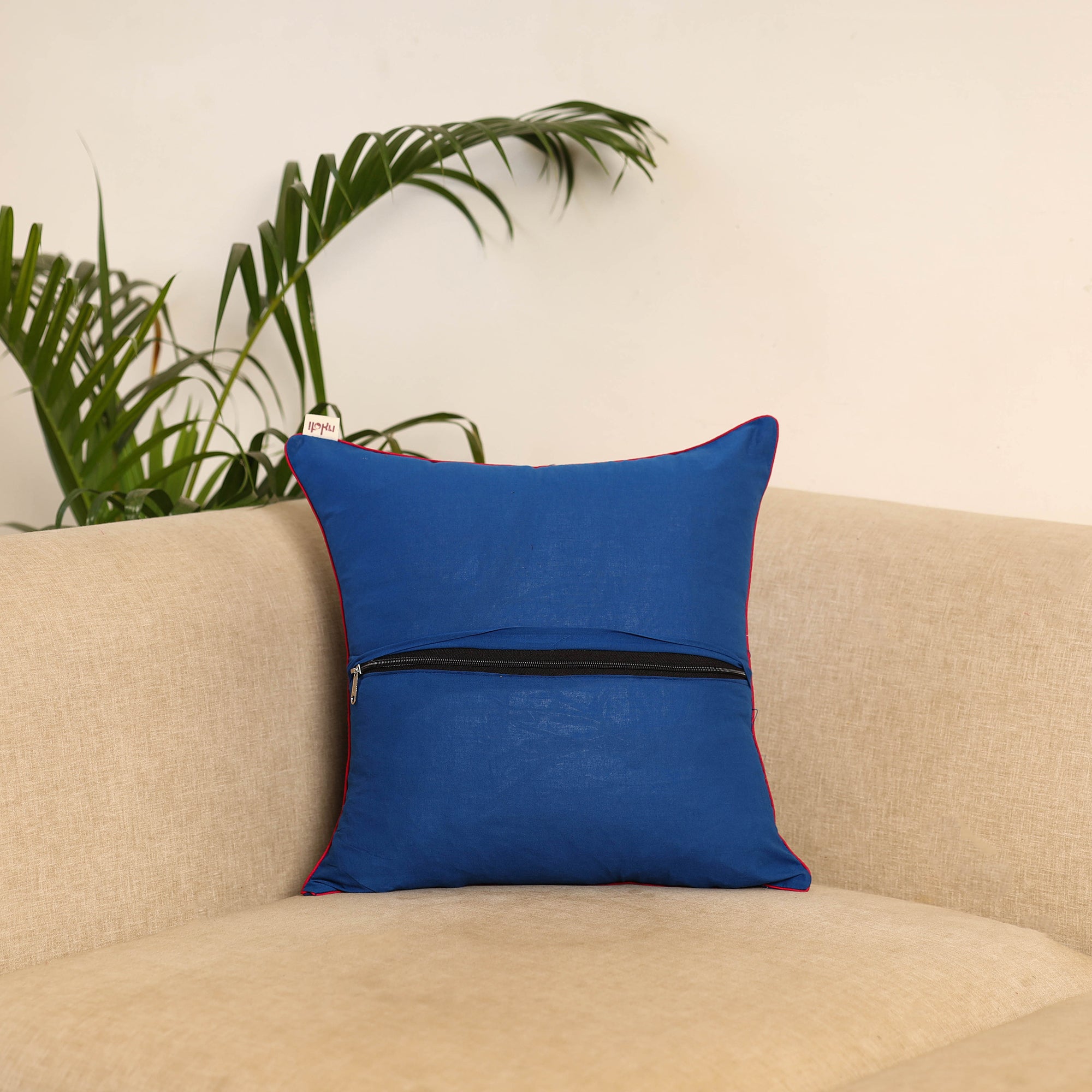 Blue pochampally ikat weave cushion cover, crafted from cotton and traditional Indian handmade textiles. It blends artistry with comfort, making it perfect for your sofa, bed or lounge area.