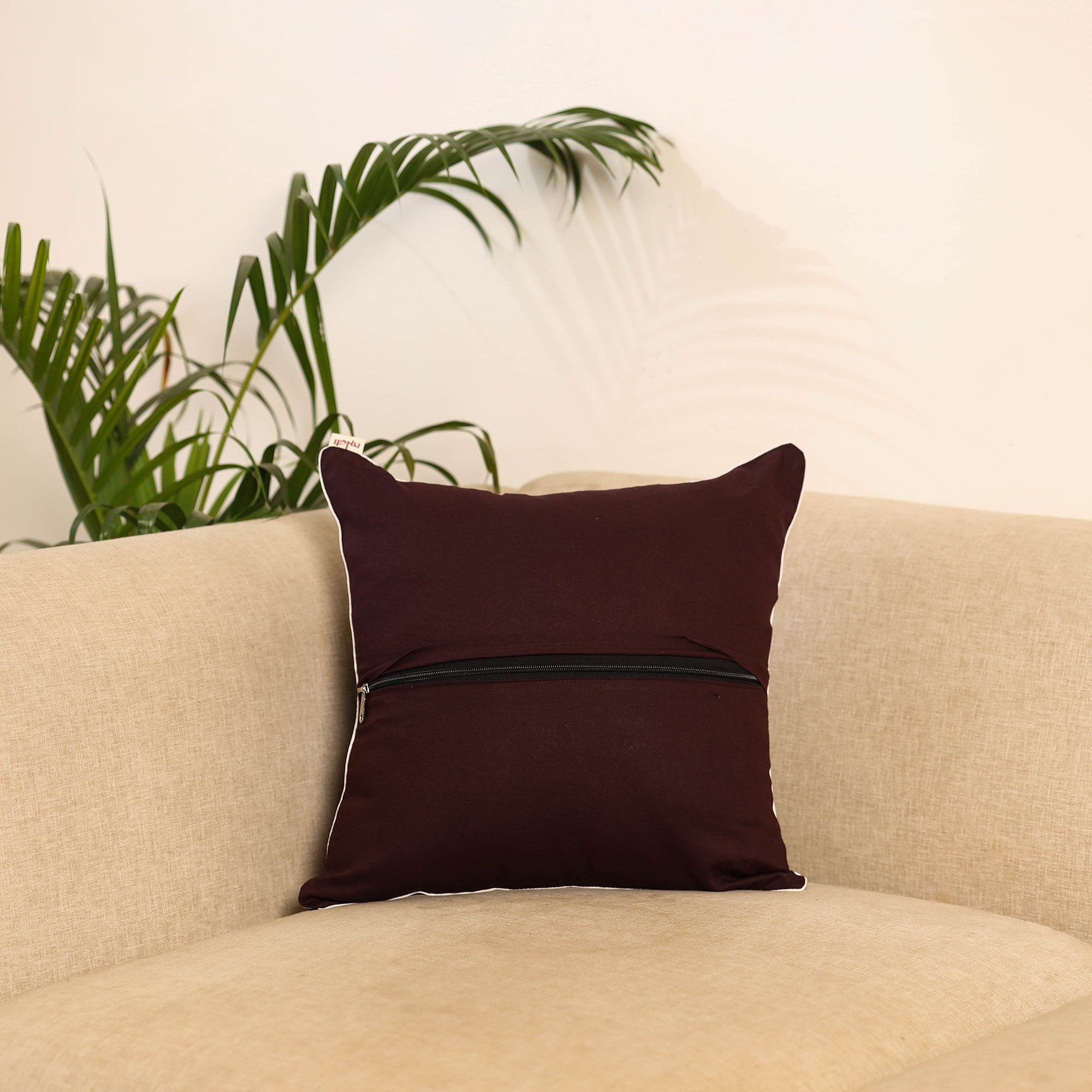 Brown pochampally ikat weave cushion cover, crafted from cotton and traditional Indian handmade textiles. It blends artistry with comfort, making it perfect for your sofa, bed or lounge area.