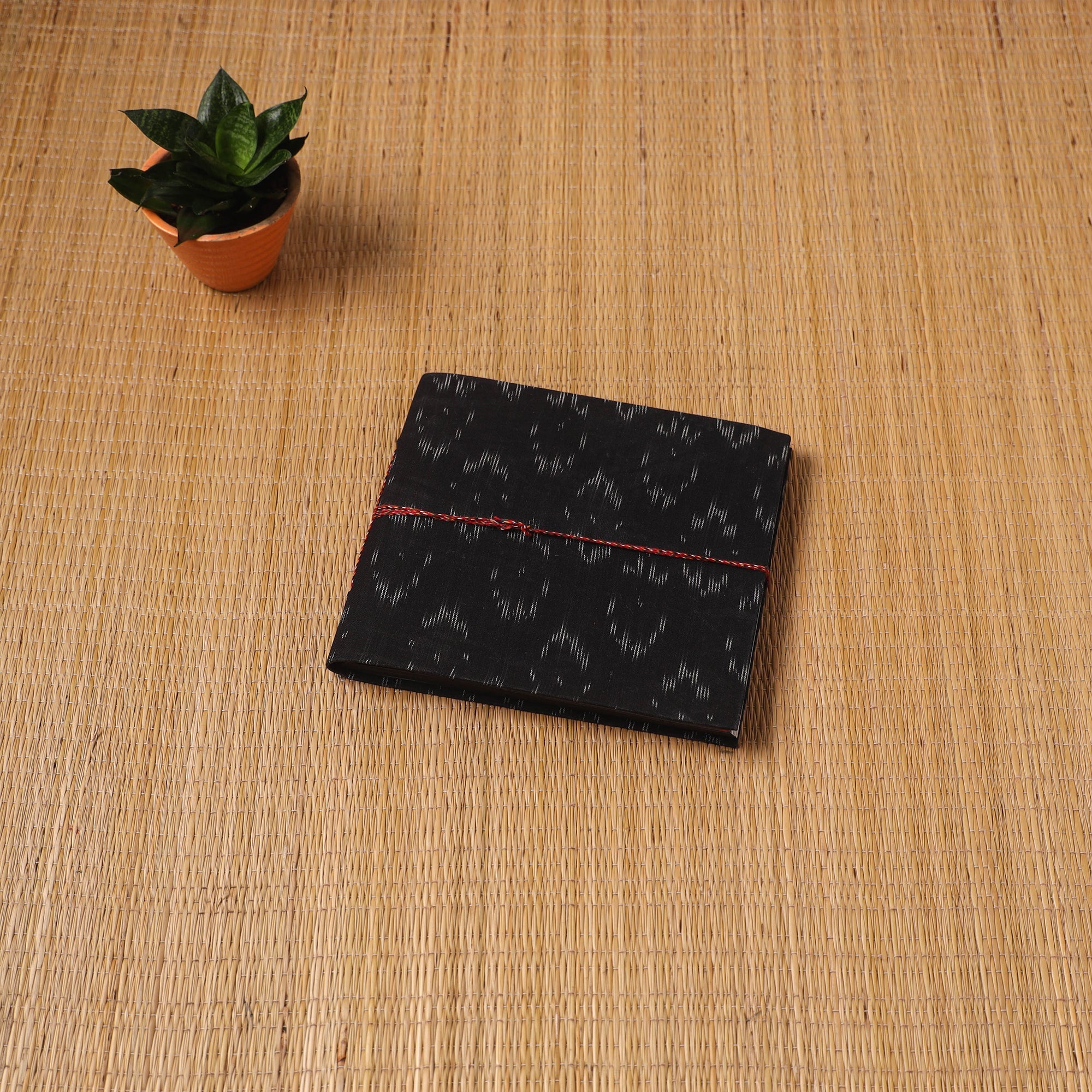 Preserve your special moments in this black cotton fabric cover photo album cum scrapbook. Wrapped in pochampally ikat fabric, it comes with 100% handmade paper sheets suitable for photos and keepsakes. Carefully crafted by artisans from Jaipur, Rajasthan, it is ideal for journaling or meaningful gifting.