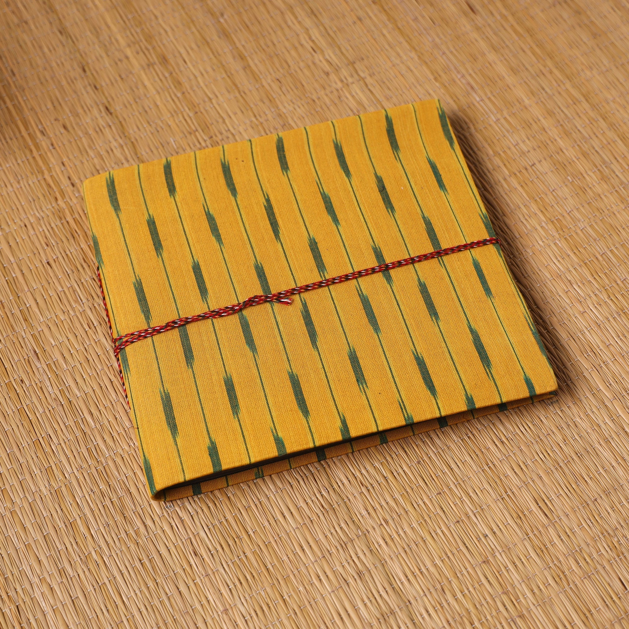 Preserve your special moments in this cotton fabric cover photo album cum scrapbook. Wrapped in pochampally ikat fabric, it comes with 100% handmade paper sheets suitable for photos and keepsakes. Carefully crafted by artisans from Jaipur, Rajasthan, it is ideal for journaling or meaningful gifting.
