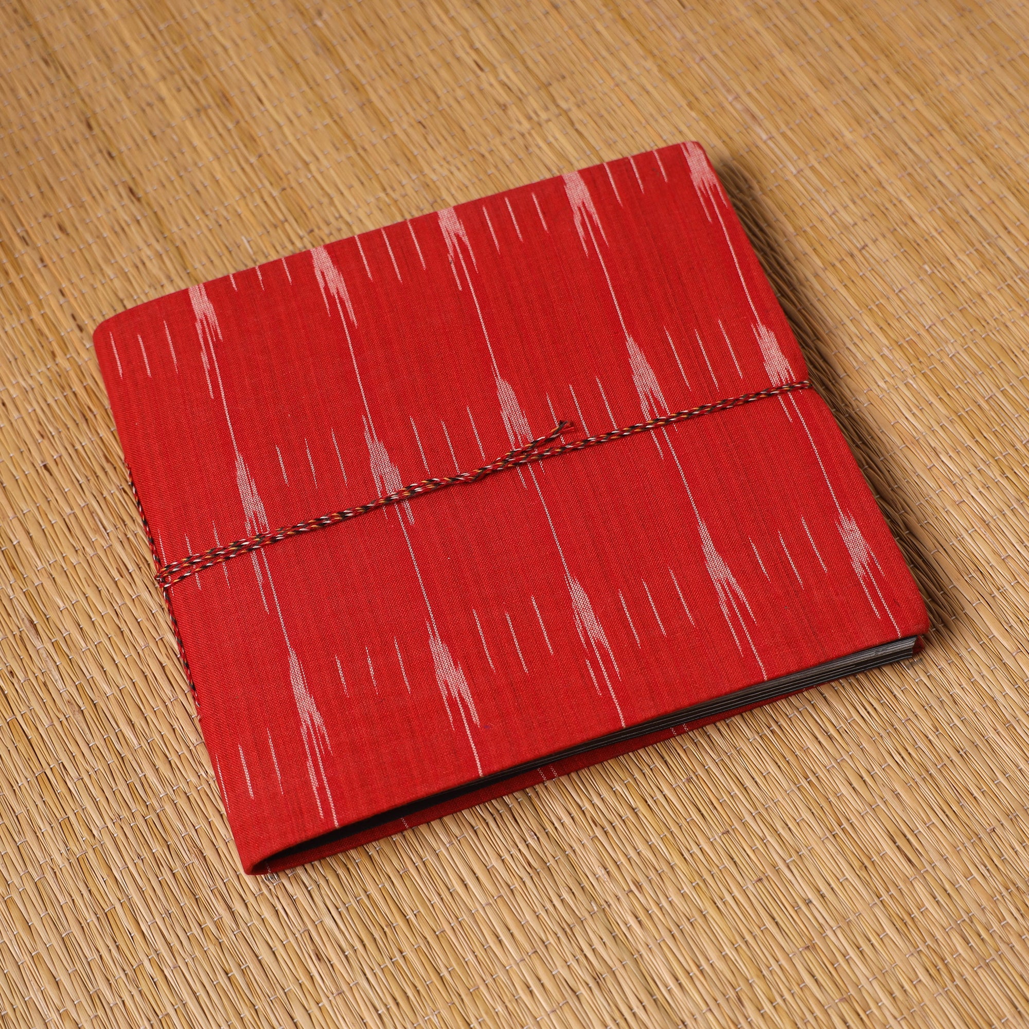 Preserve your special moments in this cotton fabric cover photo album cum scrapbook. Wrapped in pochampally ikat fabric, it comes with 100% handmade paper sheets suitable for photos and keepsakes. Carefully crafted by artisans from Jaipur, Rajasthan, it is ideal for journaling or meaningful gifting.