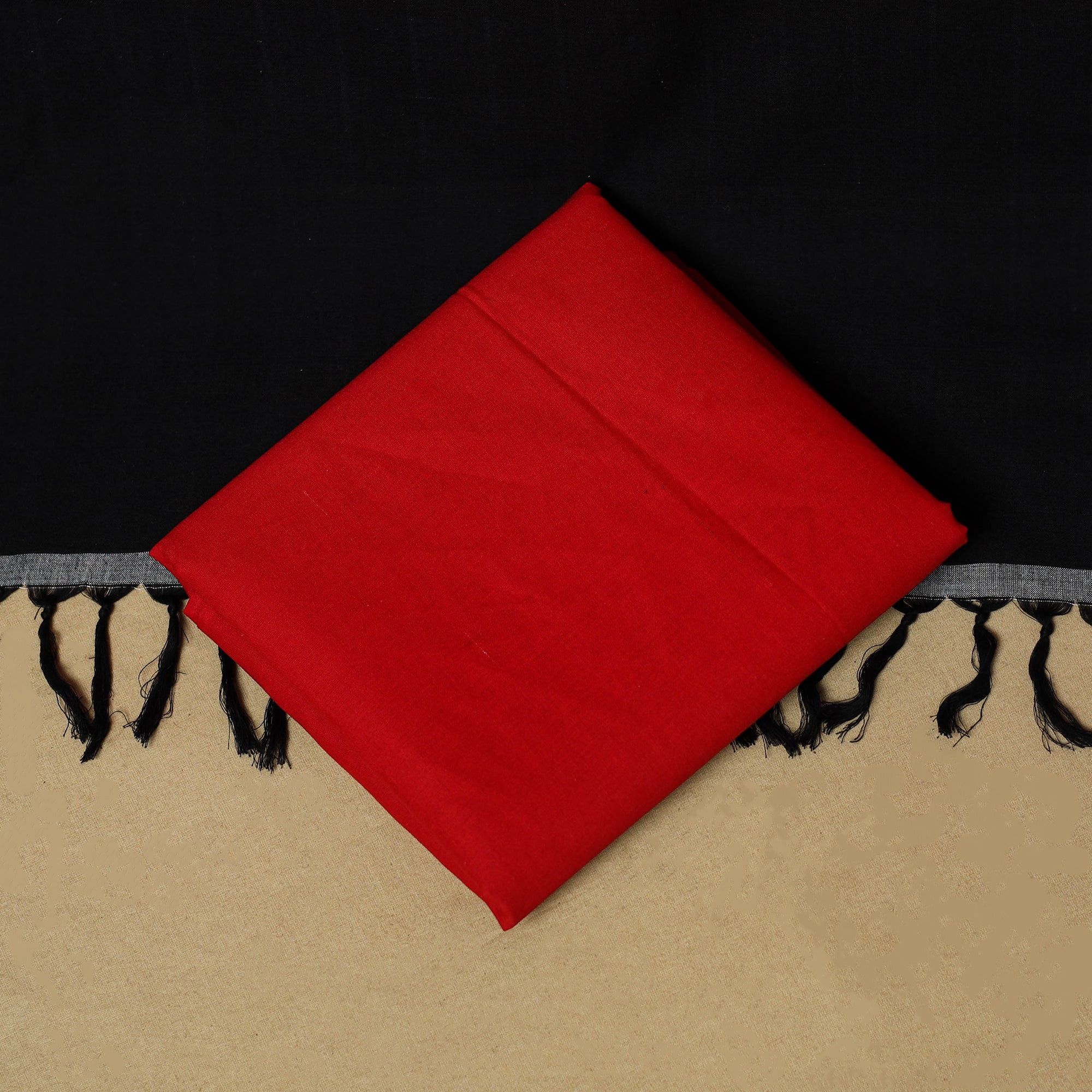 Black pochampally ikat handloom 3pc unstitched dress material is made from cotton and crafted using the ikat technique, where the warp and weft threads are dyed before weaving. Artisans then arrange the dyed threads on the loom in a set sequence, allowing the pattern to form naturally as the fabric is woven. The set includes kurta fabric, a double ikat dupatta and a plain bottom. Rooted in a centuries-old weaving tradition, it’s a distinctive choice for festive occasions, weddings and refined everyday wear.