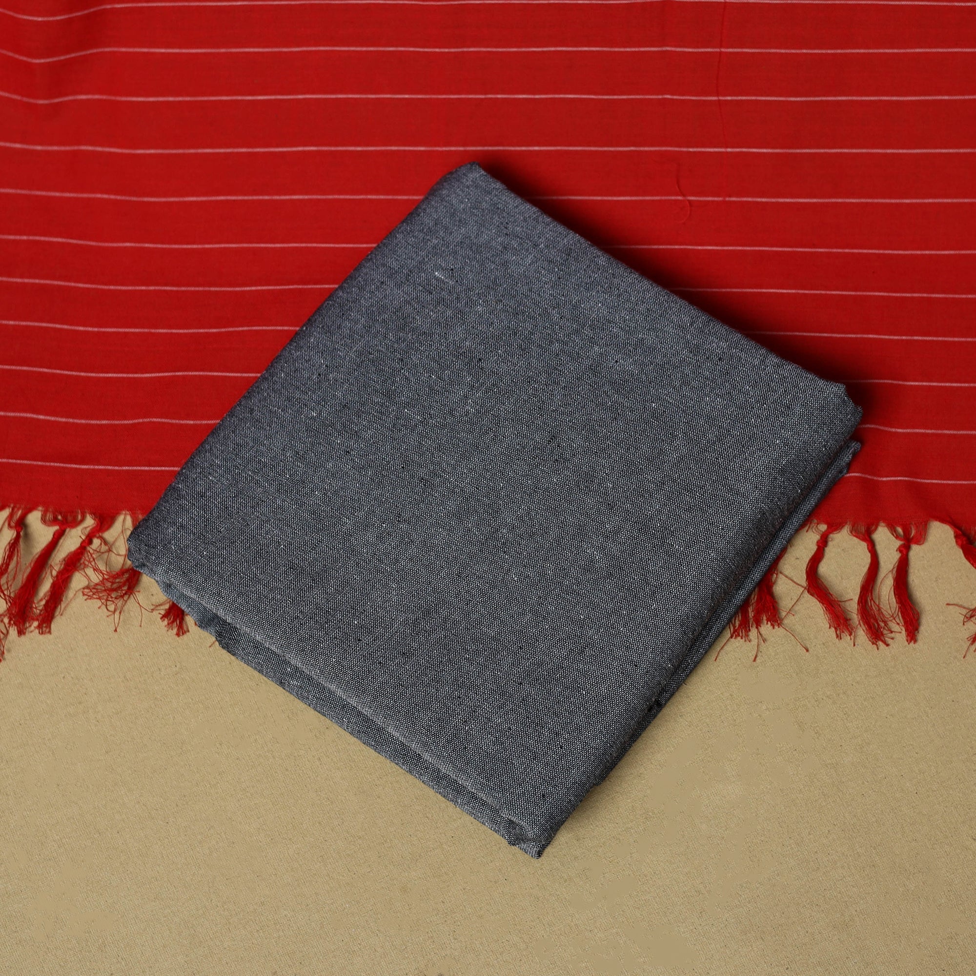 Red pochampally ikat handloom 3pc unstitched dress material is made from cotton and crafted using the ikat technique, where the warp and weft threads are dyed before weaving. Artisans then arrange the dyed threads on the loom in a set sequence, allowing the pattern to form naturally as the fabric is woven. The set includes kurta fabric, a double ikat dupatta and a plain bottom. Rooted in a centuries-old weaving tradition, it’s a distinctive choice for festive occasions, weddings and refined everyday wear.