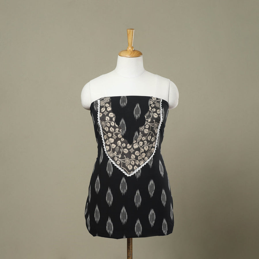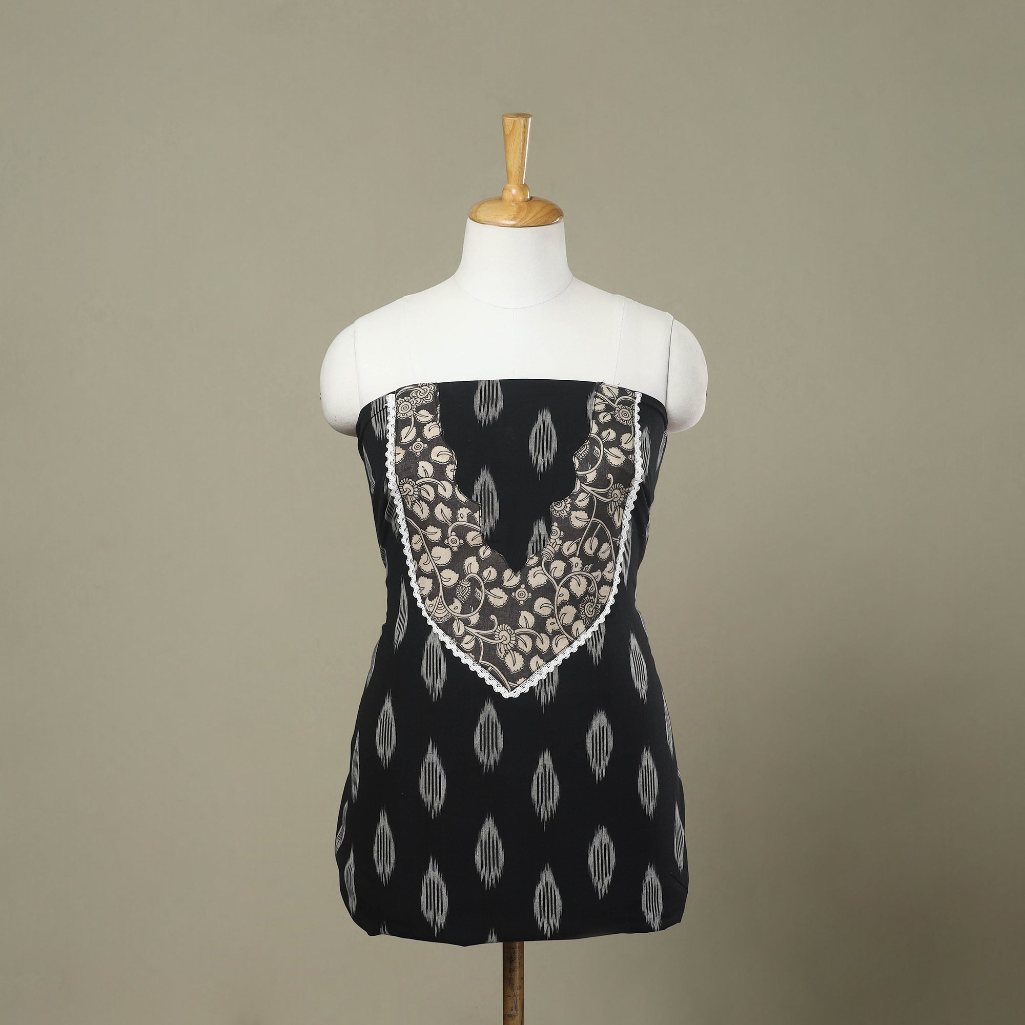 Add a touch of heritage to your wardrobe with this black pochampally Ikat patchwork cotton kurta material. Handwoven with vibrant, detailed patterns through the classic Ikat technique, the breathable cotton fabric offers both comfort and a rich cultural vibe perfect for crafting custom kurtas that tell your story.