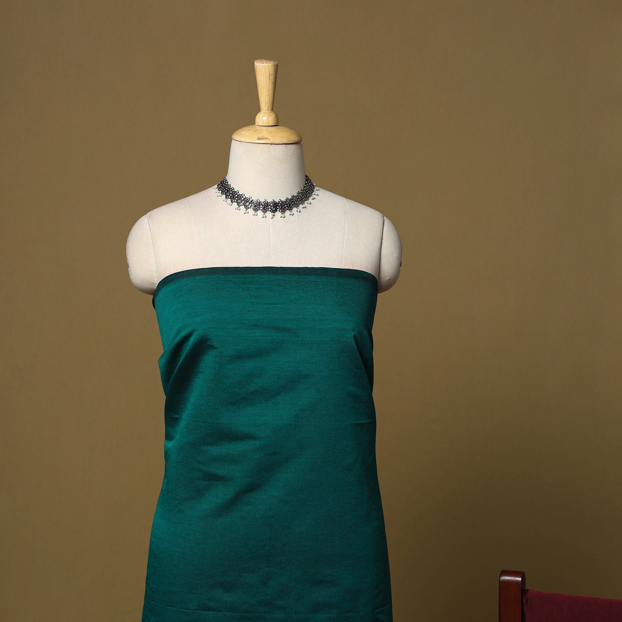 Green pochampally ikat 3pc unstitched dress material is made from a polyester silk x cotton. It features the Ikat weaving technique, where the warp and weft threads are dyed before the weaving begins. After dyeing, artisans carefully arrange the threads on the loom in a specific sequence so the patterns emerge naturally during weaving. This centuries-old weaving heritage makes each piece truly special, perfect for festive gatherings, weddings or graceful everyday wear. The set includes kurta fabric, a dupatta and a plain bottom.