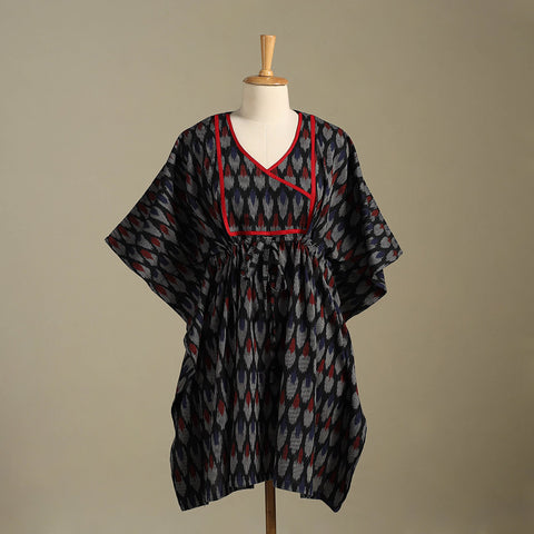 Black- Pochampally Ikat Weave Cotton Kaftan (Medium) 03