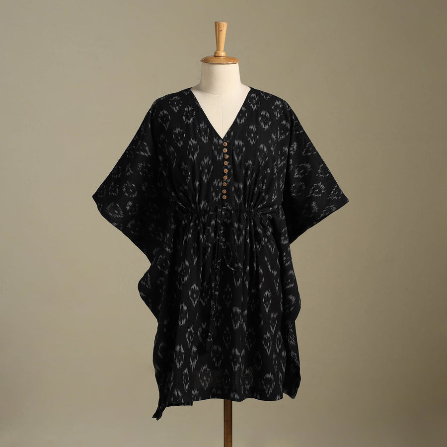 Black - Pochampally Ikat Weave Cotton Kaftan (Medium) 11
