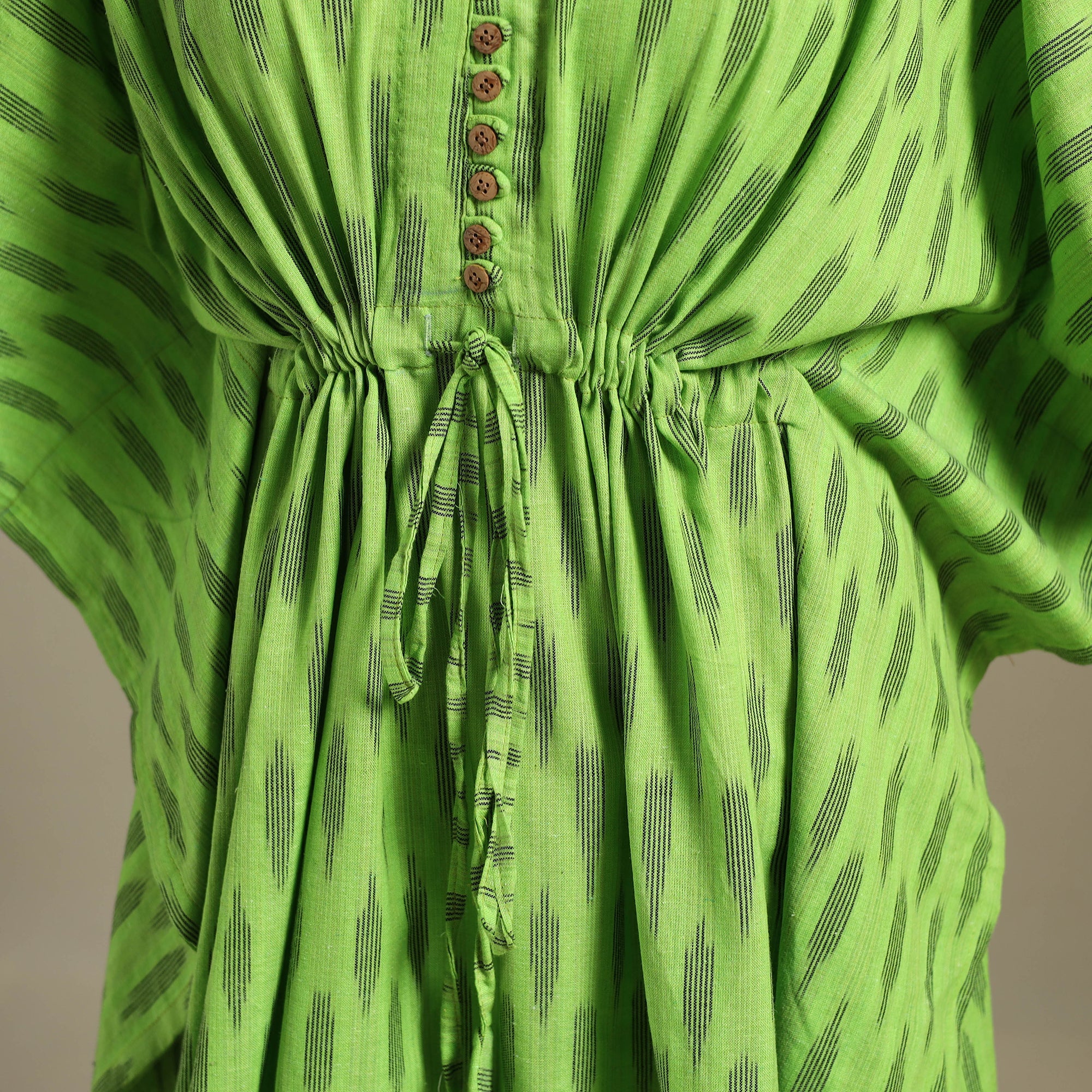 Green - Pochampally Ikat Weave Cotton Kaftan (Medium) 13