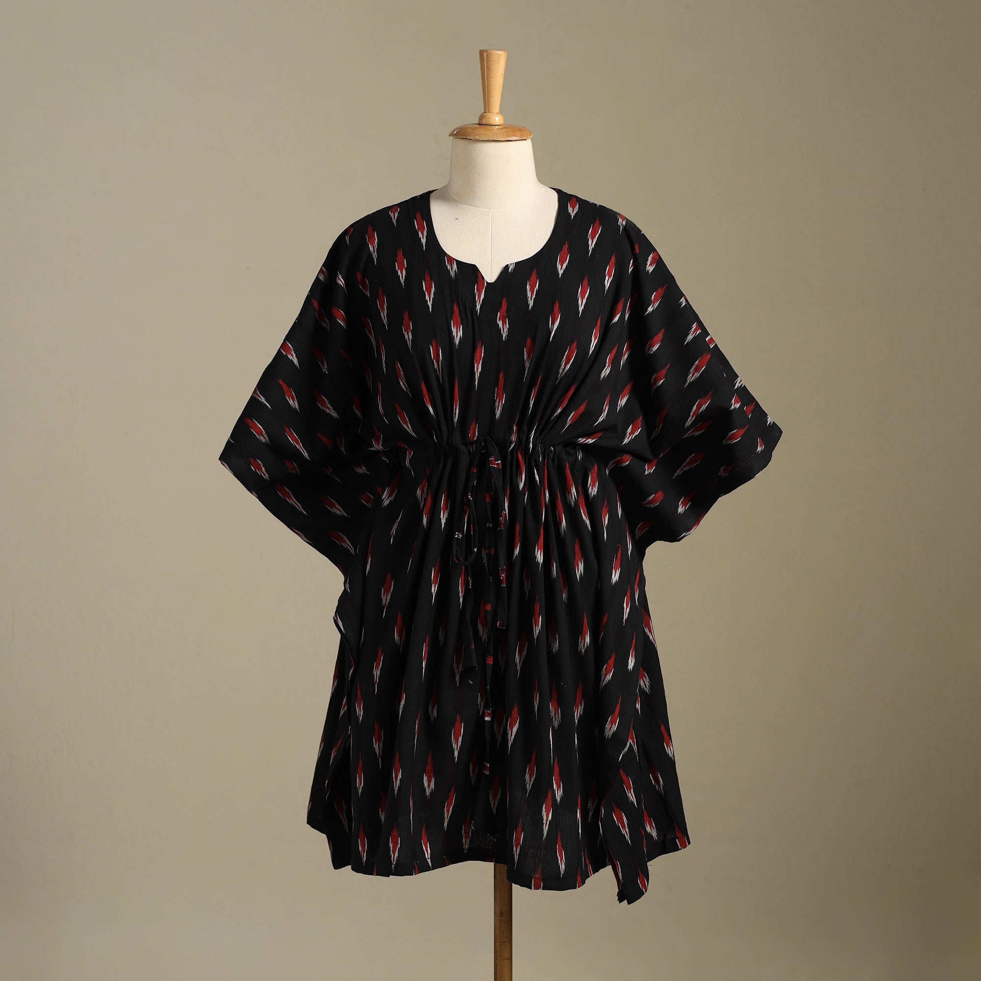 Black - Pochampally Ikat Weave Cotton Kaftan (Medium) 22