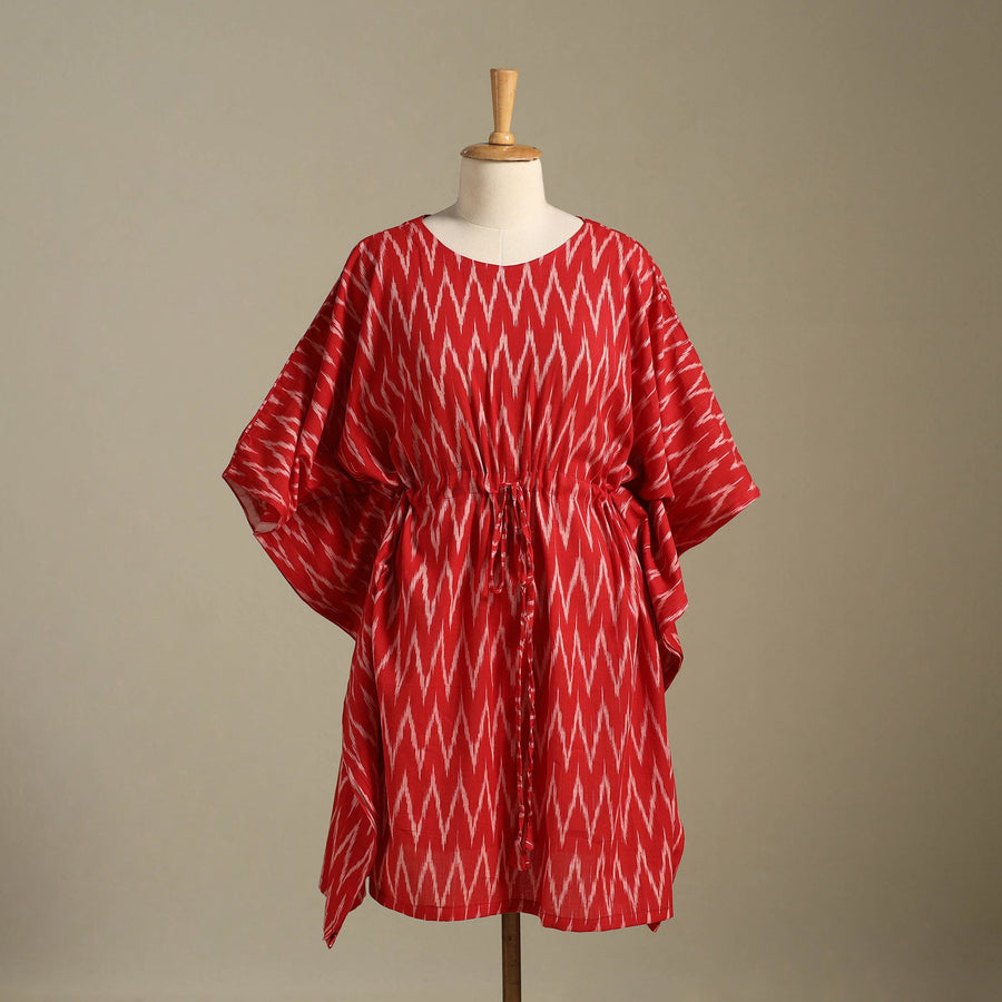 Red - Pochampally Ikat Weave Cotton Kaftan (Medium) 38