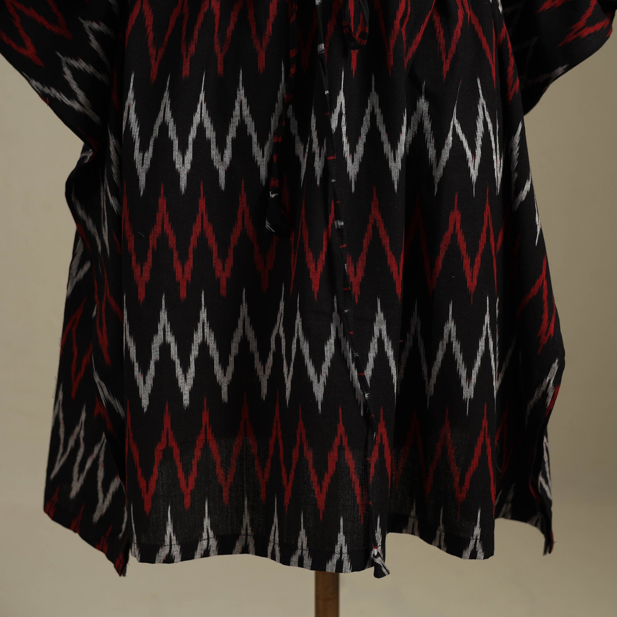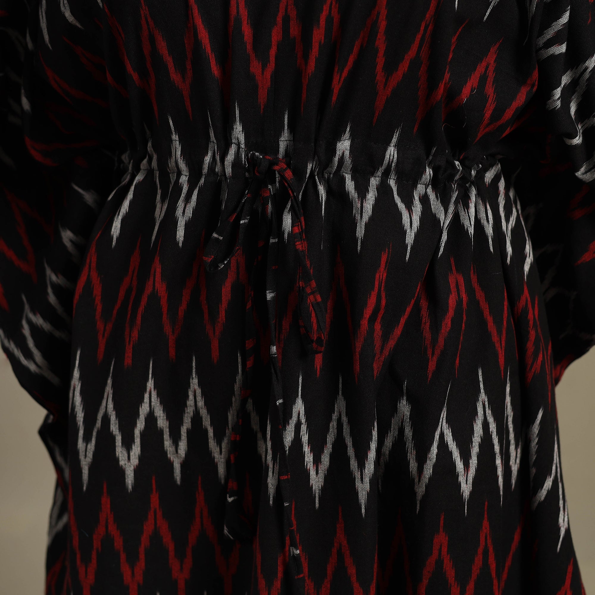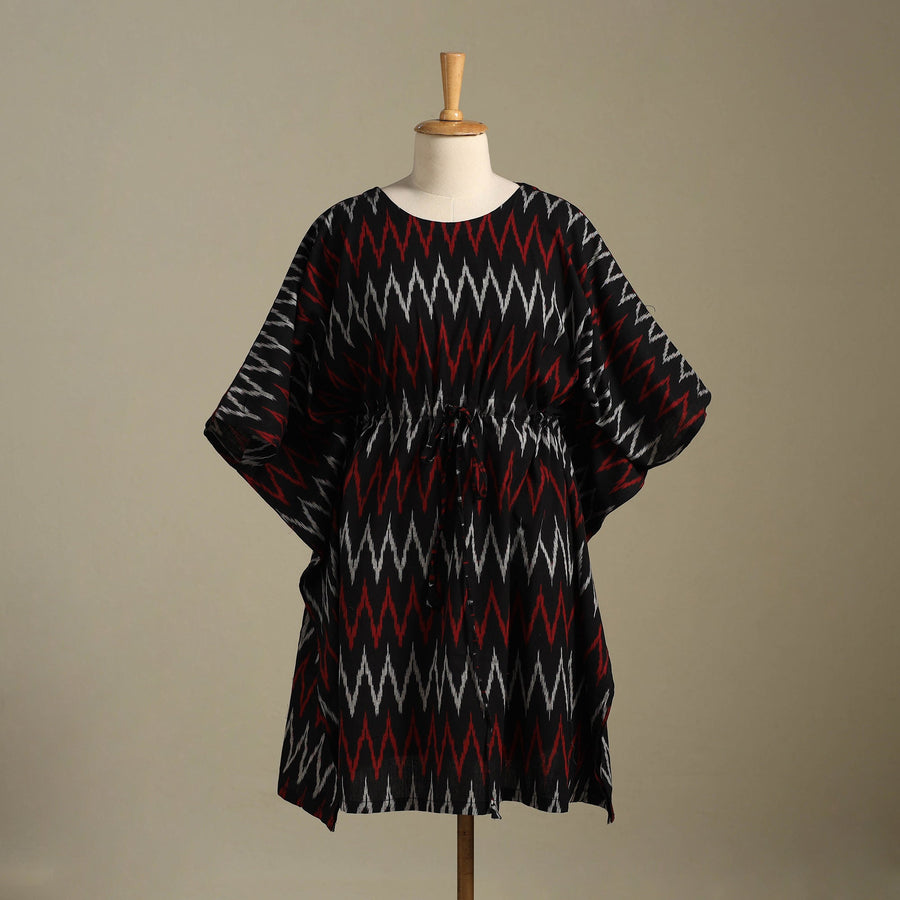Wrap yourself in cultural artistry and comfort with this blue pochampally ikat cotton kaftan. designed for effortless style. Made from breathable cotton, the kaftan drapes gracefully with its relaxed fit, while the adjustable drawstring waist ensures a custom fit ideal for lounging, vacations, or casual day outs.