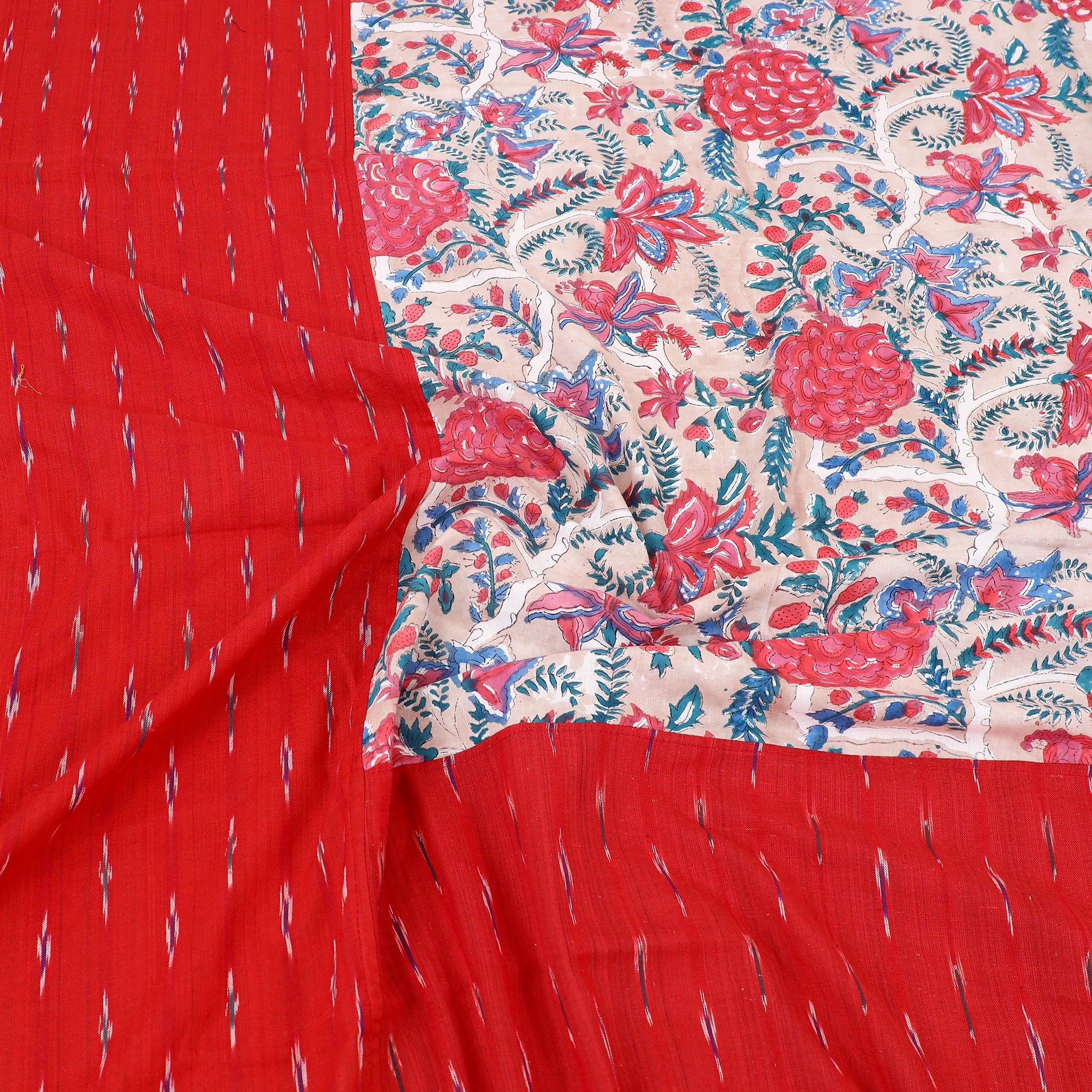 • Red - pochampally ikat with sanganeri patch cotton bedsheet