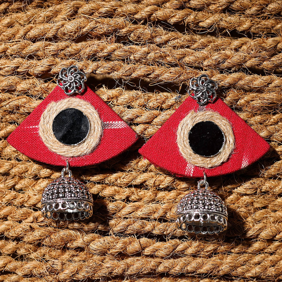Enhance your style with our red handcrafted gs fabart jhumki earrings. Intricately designed with fabric & german silver. Perfect for casual outings or festive celebrations they make a versatile addition to any jewelry collection.