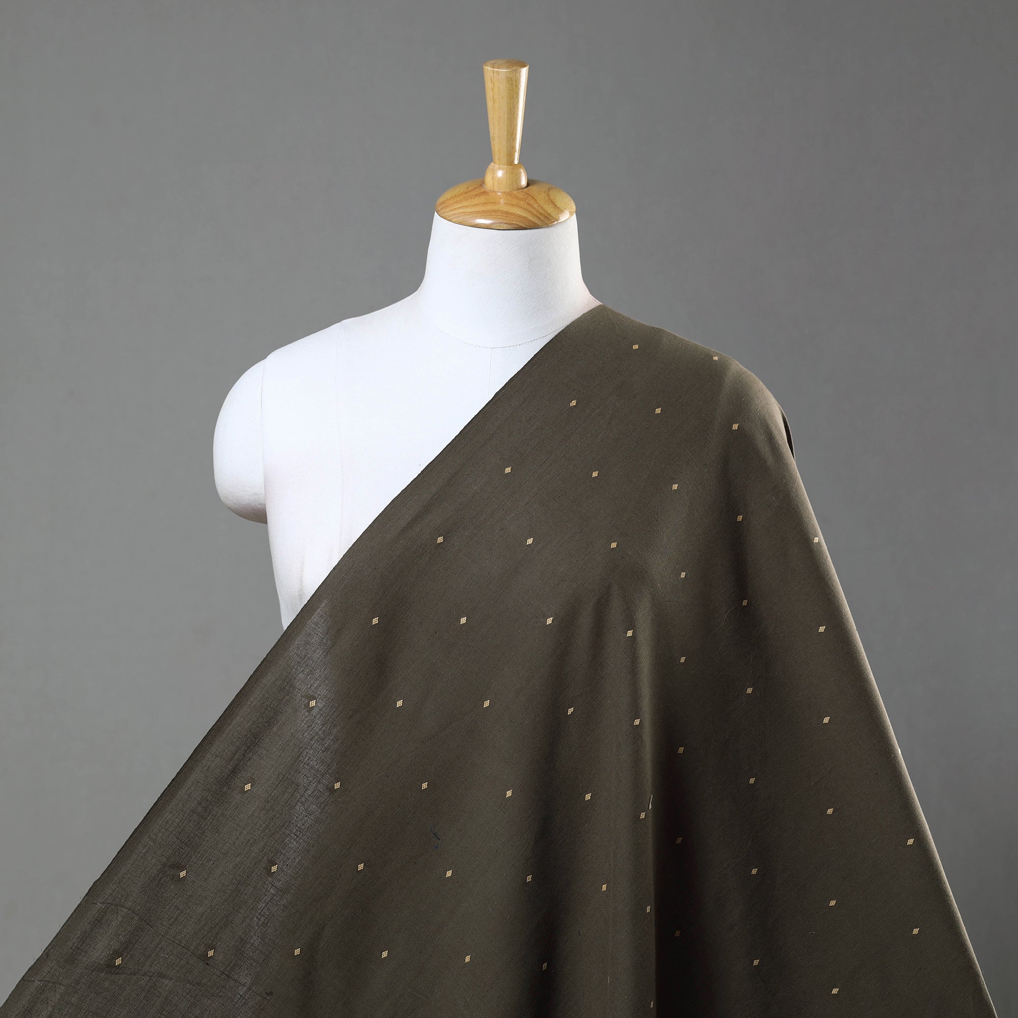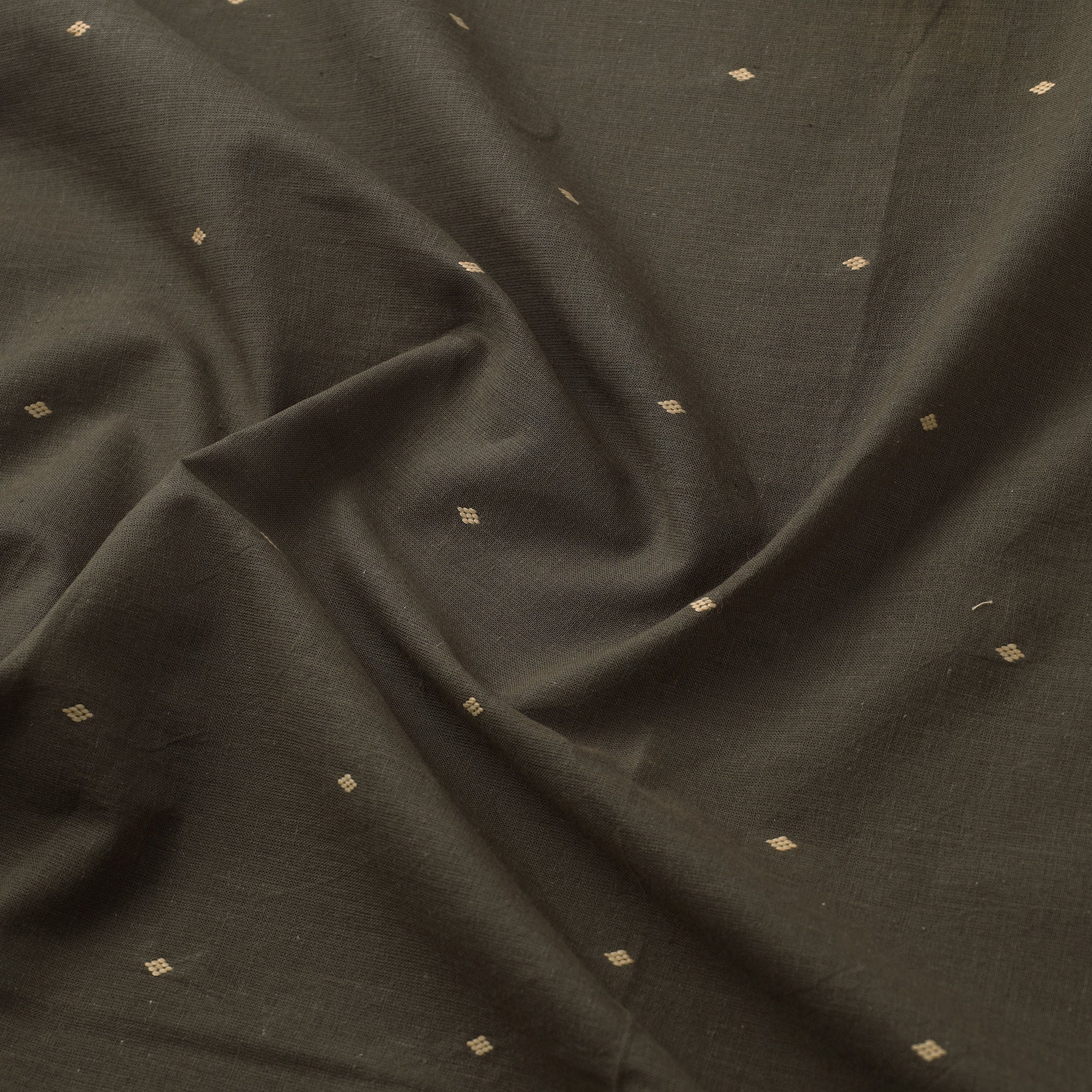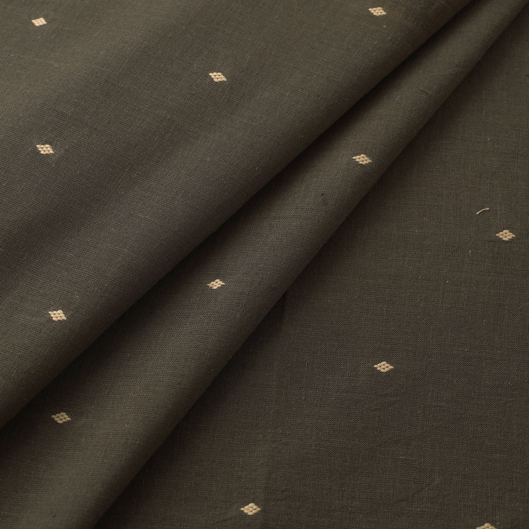 This fine olive green prewashed cotton jacquard fabric from Tamil Nadu showcases intricate woven patterns that add a touch of elegance to any project. Known for its durability and breathability, making it ideal for clothing or home décor. Prewashing ensures minimal shrinkage.
