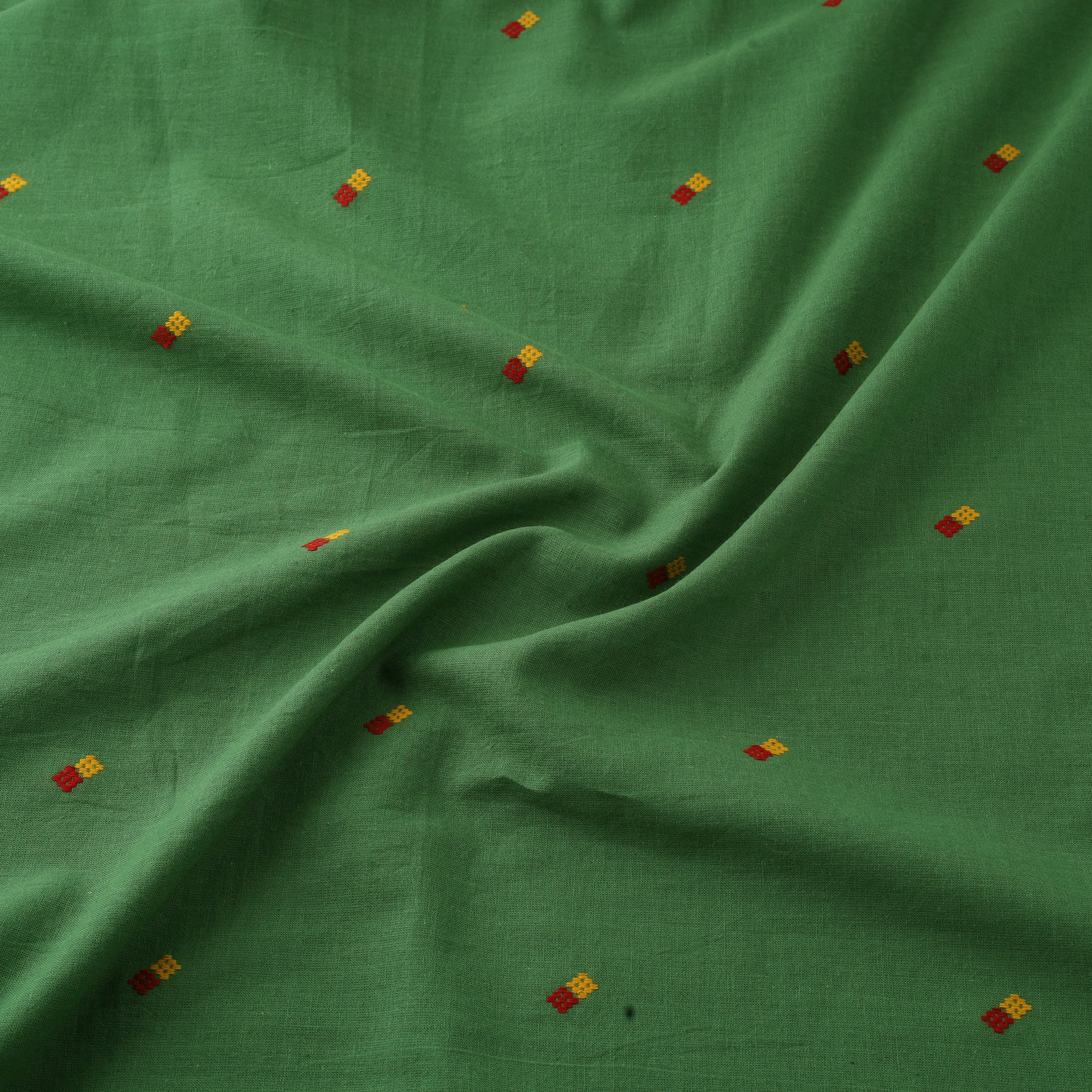 Woven in Tamil Nadu, this green jacquard cotton fabric features a traditionally inspired pattern crafted using a modern jacquard weaving technique. Its pre-washed finish offers a soft feel, perfect for making kurtas, dresses, or home décor accents. While machine-woven, it beautifully reflects the richness of India’s textile heritage.
