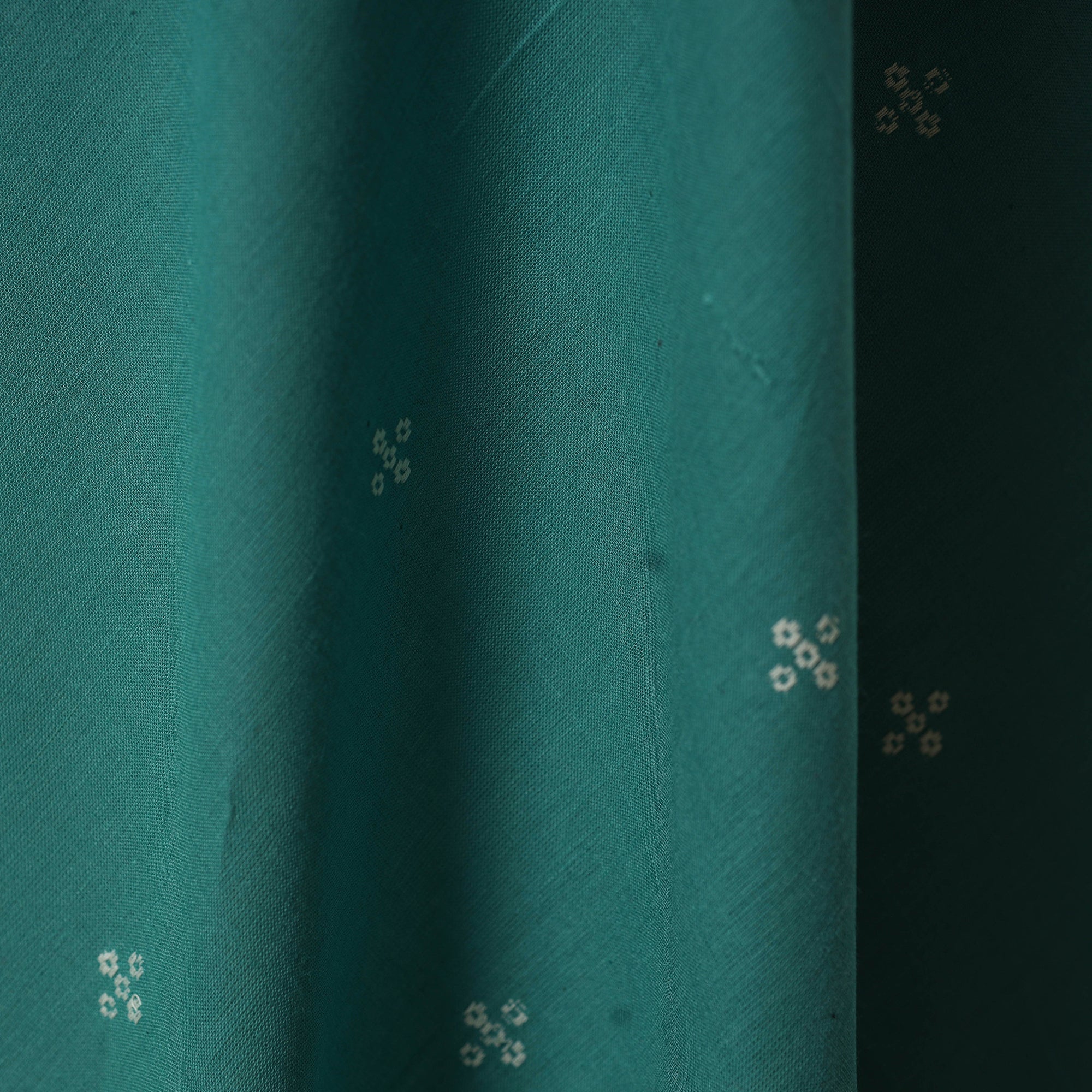 Green jacquard cotton fabric combines traditional designs with modern weaving. Its prewashed texture gives a smooth feel and easy drape, making it perfect for kurtas, dresses, or home decor items. Though machine-woven, it still reflects the beauty of India’s rich textile heritage.
