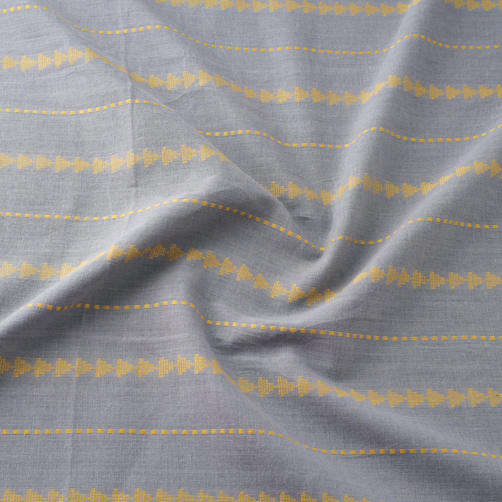 Woven in Telangana, this grey jacquard cotton fabric showcases a traditional-inspired pattern through a modern weaving technique. Its prewashed texture adds softness, making it ideal for crafting kurtas, dresses, or home décor accents. While machine-made, it carries the essence of India’s rich textile heritage.
