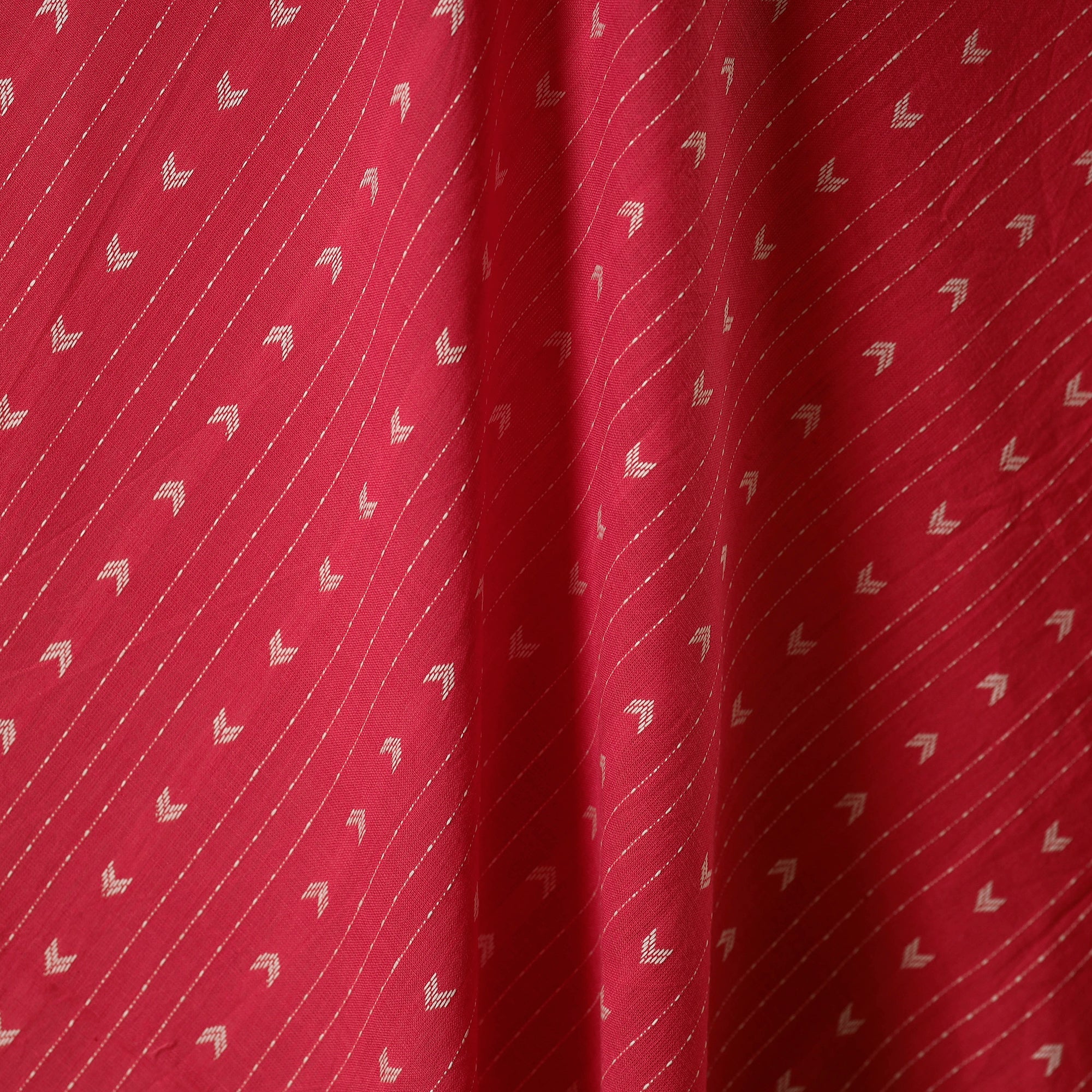 Woven in Telangana, this red jacquard cotton fabric features a traditionally inspired pattern created through modern weaving techniques. Its prewashed finish lends a smooth, soft touch, making it ideal for kurtas, dresses, or home décor accents. Though machine-woven, it beautifully reflects the richness of India’s textile heritage.